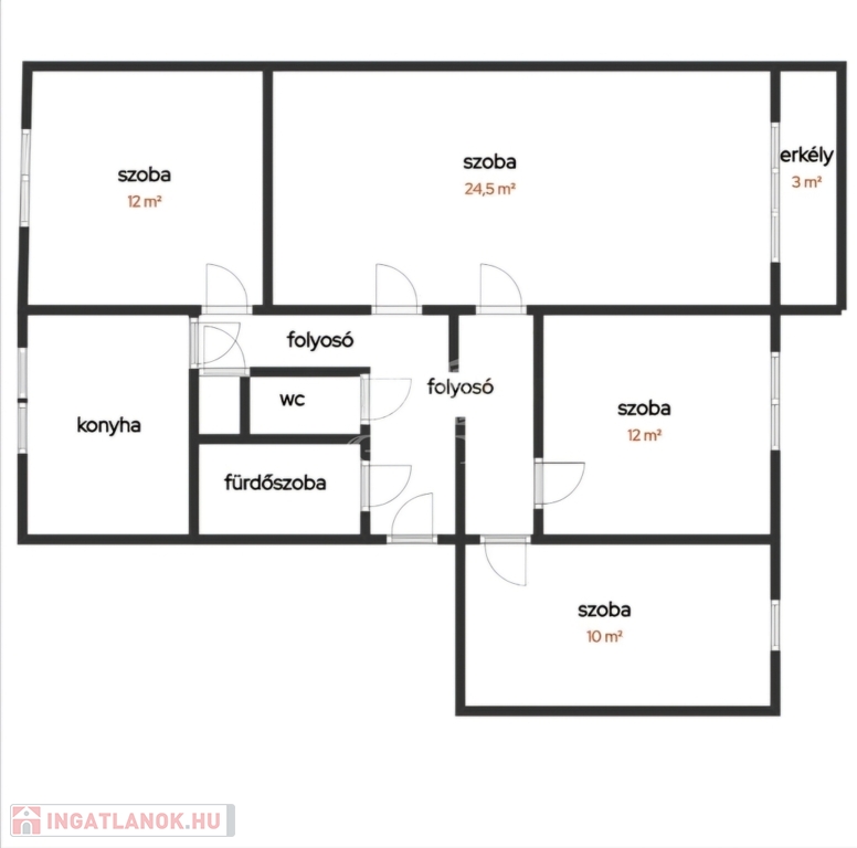 A nagyszoba két bejárattal is rendelkezik. Méretéből és elosztásából adódóan ebből a helyiségből étkezőrész vagy kisebb háló/dolgozószoba könnyedén leválatszható.