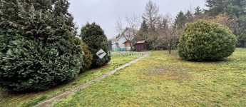 A telken csodálatos tujafák között egy kerti tároló is megtalálható, ahol a fűnyíró is parkolhat (mert szükség lesz rá).