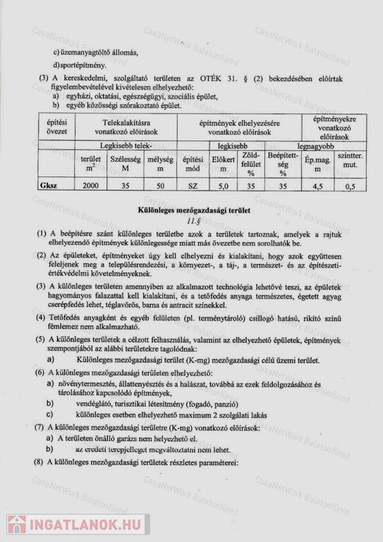 Területi besorolás alapján 20% beépítés engedélyezett.CASANETWORK BALATONFÜREDI ingatlaniroda eladásra kínálja