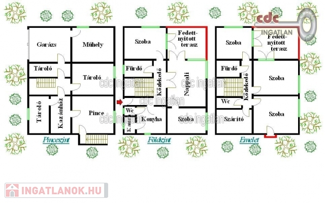 KIZÁRÓLAG A KÍNÁLATUNKBAN! Szentendre Belvárosában kínálom megvételre ezt a 720 m2-es telken lévő, 3 szintes, 166 m2-es + 109 m2-es pinceszinttel rendelkező, 6 szobás, nagy teraszos, 2 konyhás, 2 fürdőszobás, egyedi gázfűtéses és padlófűtéses, napfényes, kitűnő állapotú családi házat. Az ingatlan 1987-ben épült, tégla építésű, 3 szintes, nagyon jó állapotú, igényes, folyamatosan karbantartott. A földszinten 4 éve a