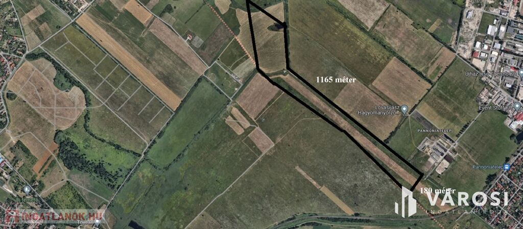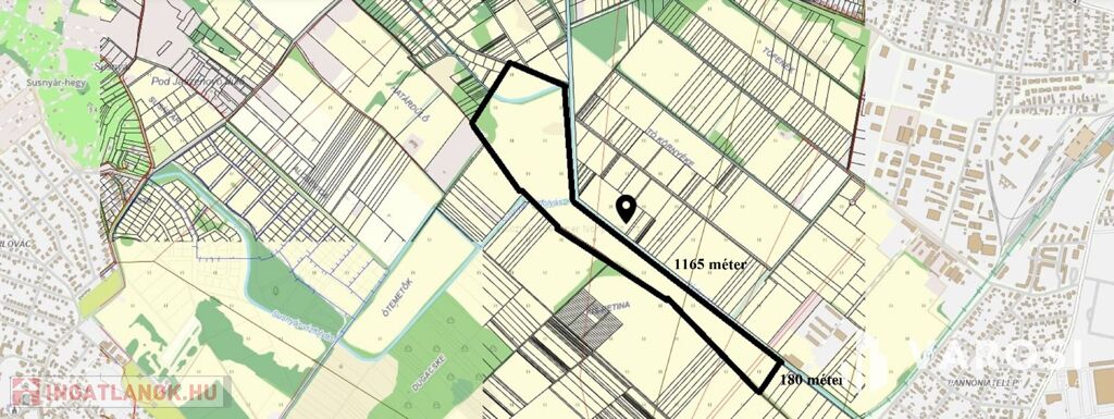 Az eladás tárgyát képző telekrész egy nagyobb, 23 Ha méretű telek része melynek a hányad szerinti mérete 950nm.