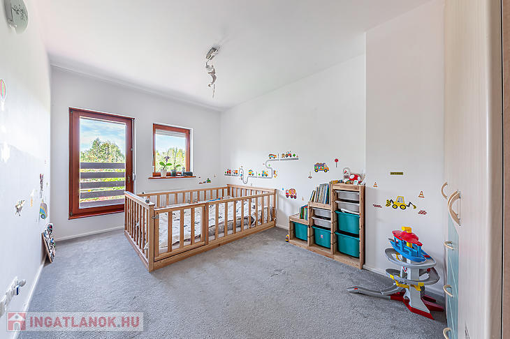 Az alapterülete 185 nm, plusz egy 294 nm-es saját kert.