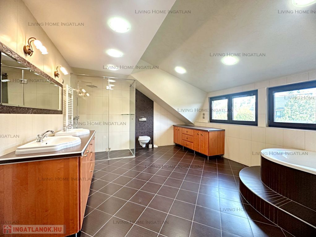 This unique, Mediterranean-style, multi-story villa with a gross floor area of 490 m² is for sale in a popular part of Szentendre, on a 1,837 m² plot suitable for landscaping. This modern family home awaits its new owner with spacious rooms, 180-degree panoramic terraces and a large garden. The solid brick building is timeless and built in a uniform style. Thanks to the large glass surfaces and wide, covered terraces, the home is bright, light and cozy. In the lower part of the plot there is an 80 sqm wine cellar with a terrace and an oven, and in front of it there is a flat area suitable for ball games.