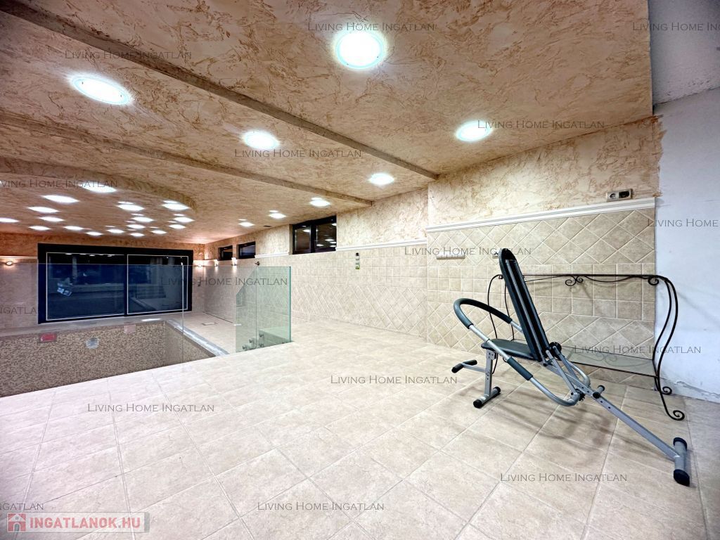 Pinceszint: beltéri medence mellékhelyiséggel, mosókonyha, gépészeti helyiség, tárolók.