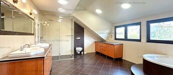 Szentendre kedvelt részén eladó ez a különleges, bruttó 490 nm-es, mediterrán hangulatú, többszintes villa 1837 nm-es parkosítható telken. A modern családi ház tágas terekkel, 180 fokos körpanorámás teraszokkal és nagyméretű kerttel várja új tulajdonosát. A masszív téglaépület időtálló, egységes stílusban készült. A nagy üvegfelületeknek és a széles, fedett teraszoknak köszönhetően az otthon fényes, világos és hangulatos. A telek alsó részében 80 nm-es borospince található terasszal, kemencével, előtte pedig labdajátékra alkalmas sík terület.