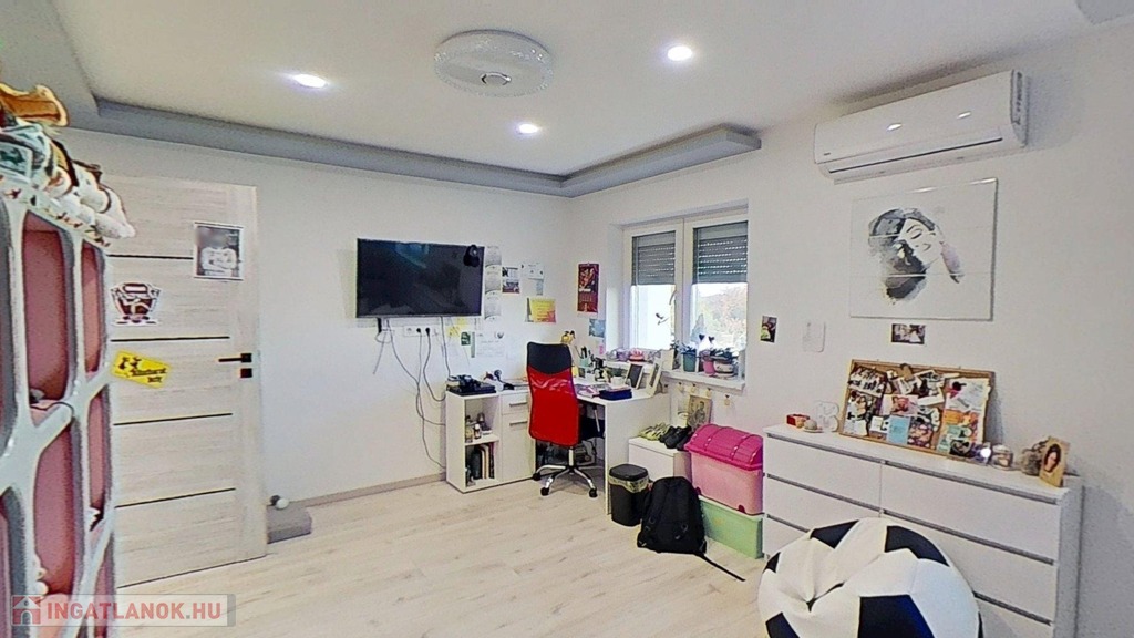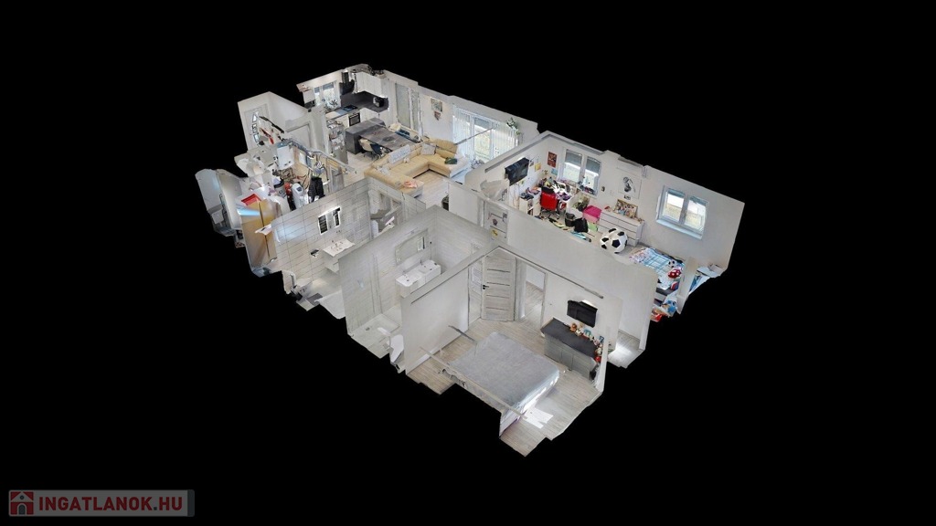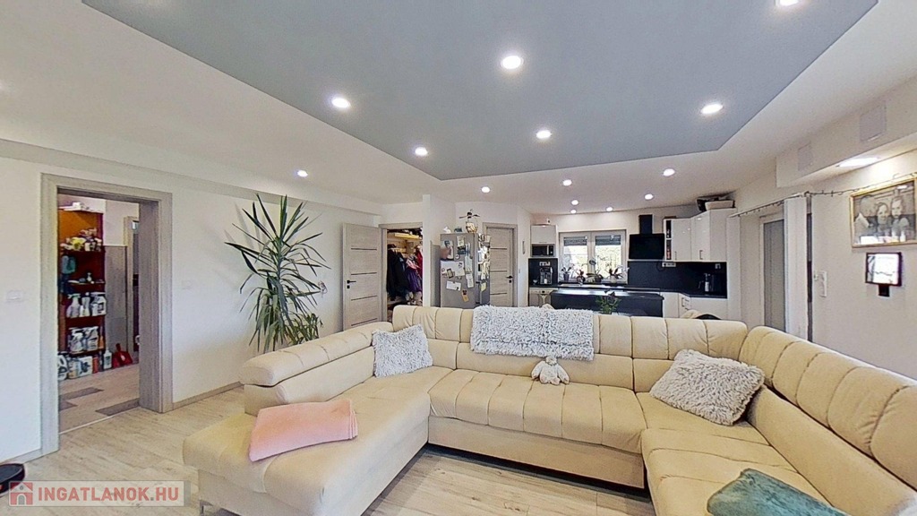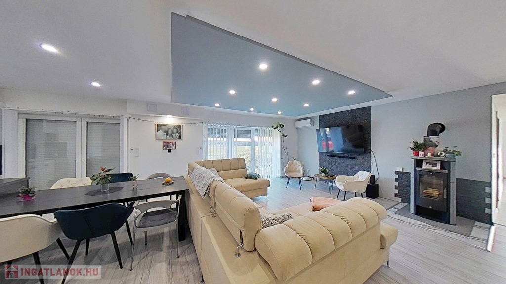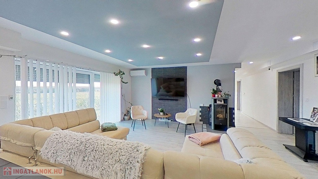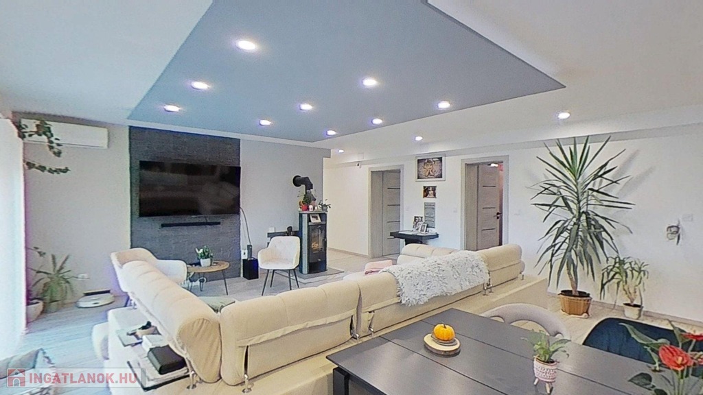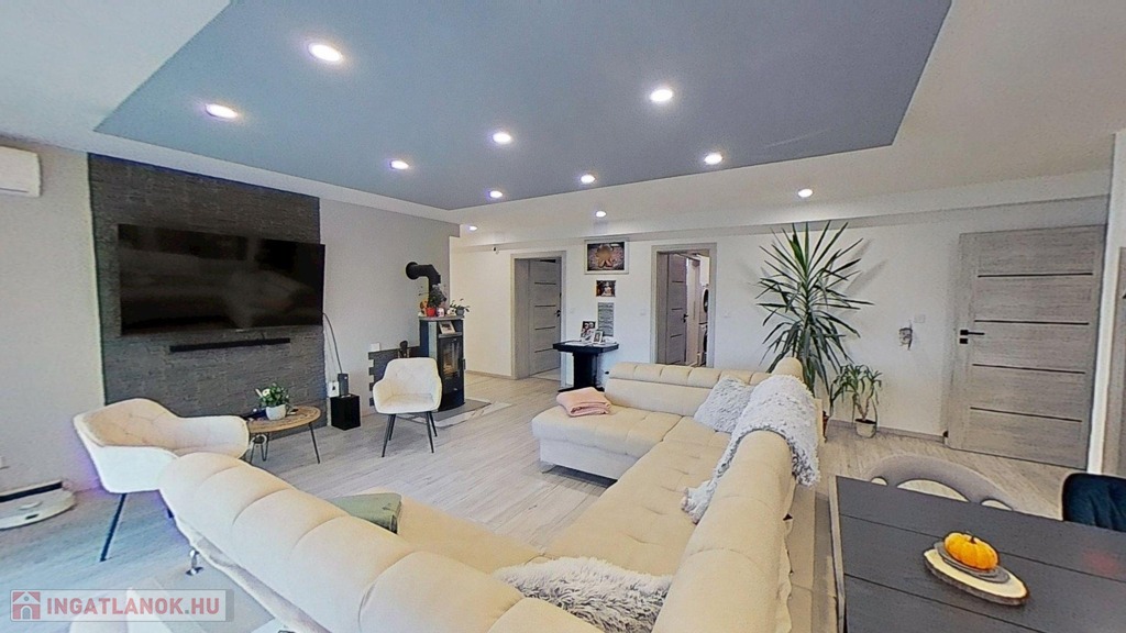 Világos, tágas belső terek, praktikus elosztás, bravúros térkihasználás, pazar, egymással harmonizáló színek jellemzik az ingatlant. A helyiségek méreteiről, a ház alaprajzáról a mellékelt virtuális túra keretein belül tájékozódhat, megtekintés előtt érdemes bejárni.