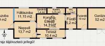 - helyiségek: 2 tágas hálószoba, 1 nappali, konyha-étkező, fürdő, külön WC, gardrób, kamra, tágas terasz