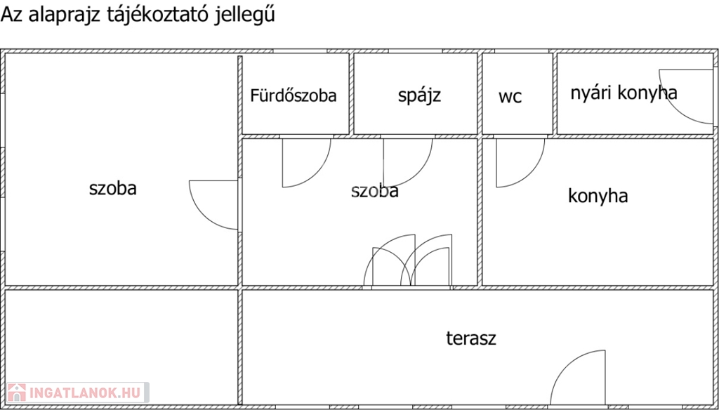 -a házban 2 egymásba nyíló szóba, konyha, spájz, fürdőszoba és nyári konyha található