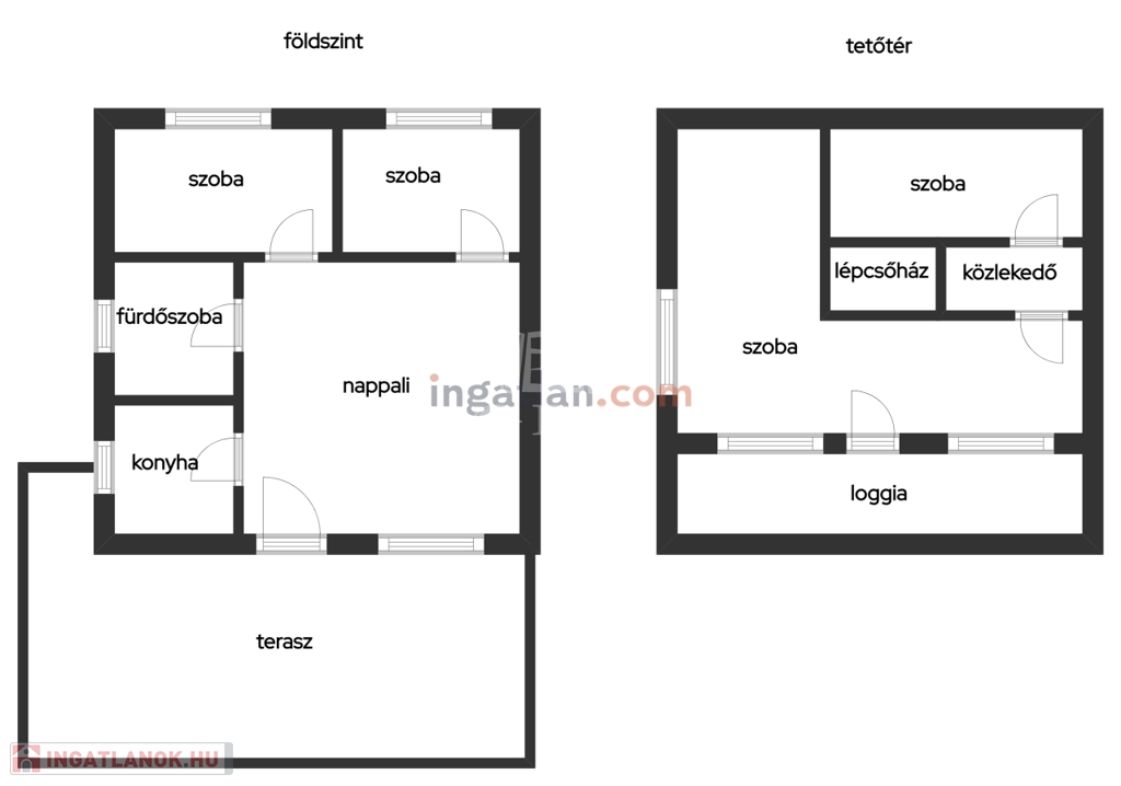 -emeleten: közlekedő, szoba, félszoba, loggia,