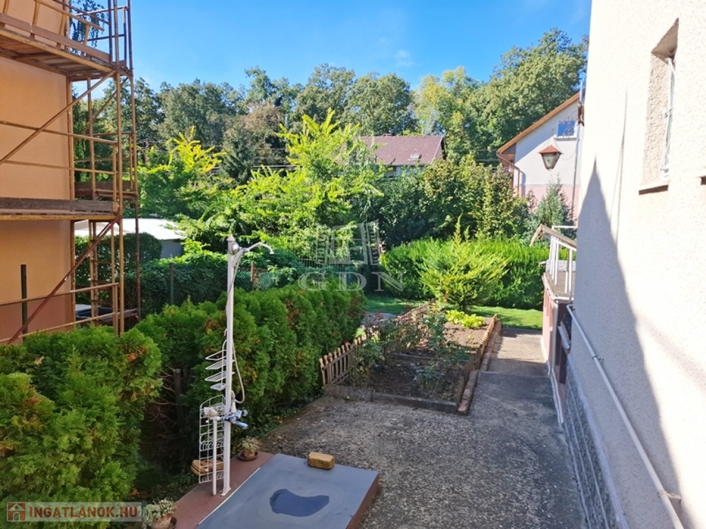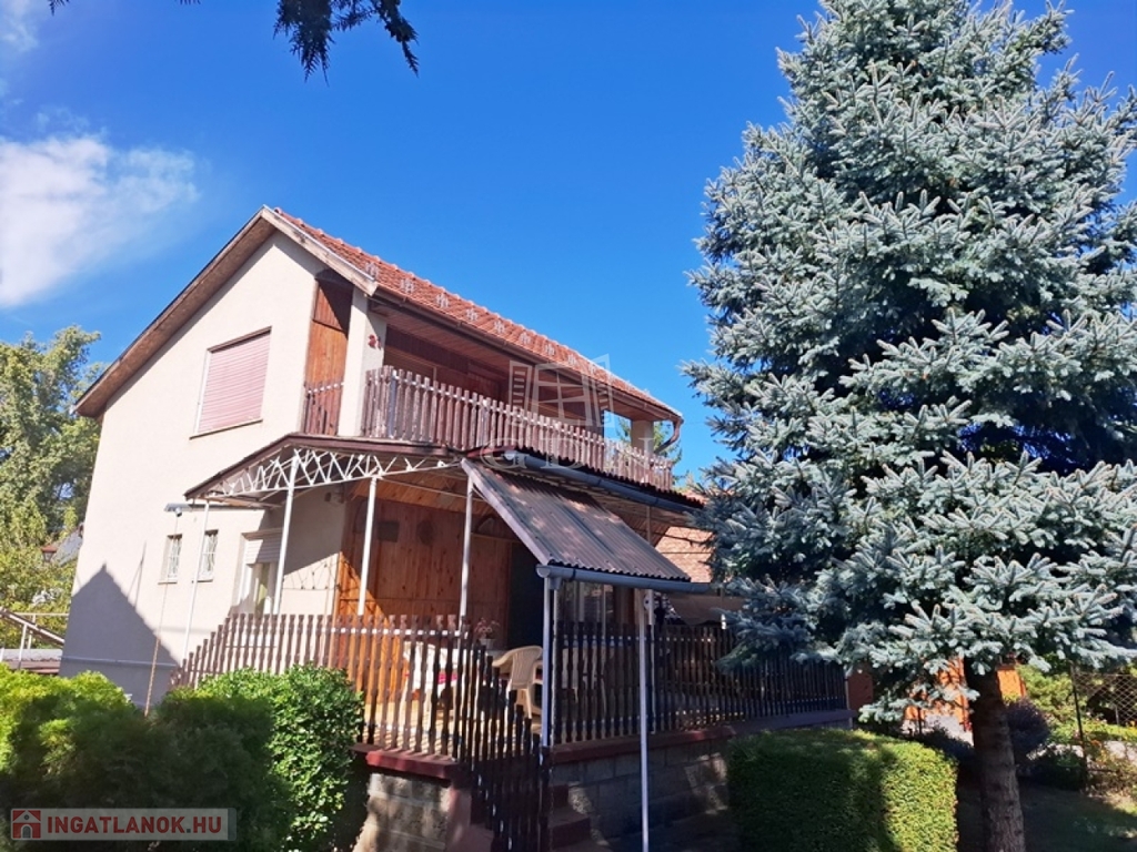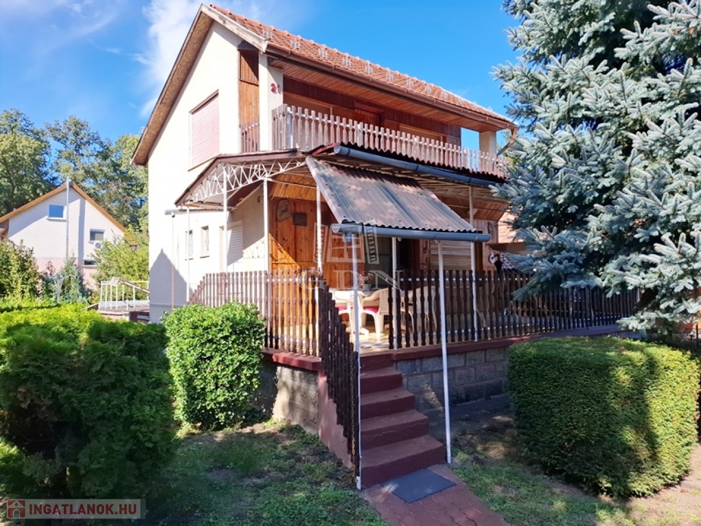 A 398 m2-es összközműves telek melyen 1980-ban megépült ez a háromszintes nyaraló, rendezett dísznövényekkel beültetett.