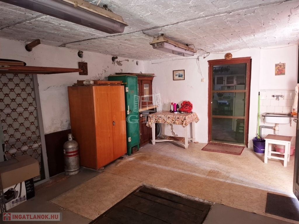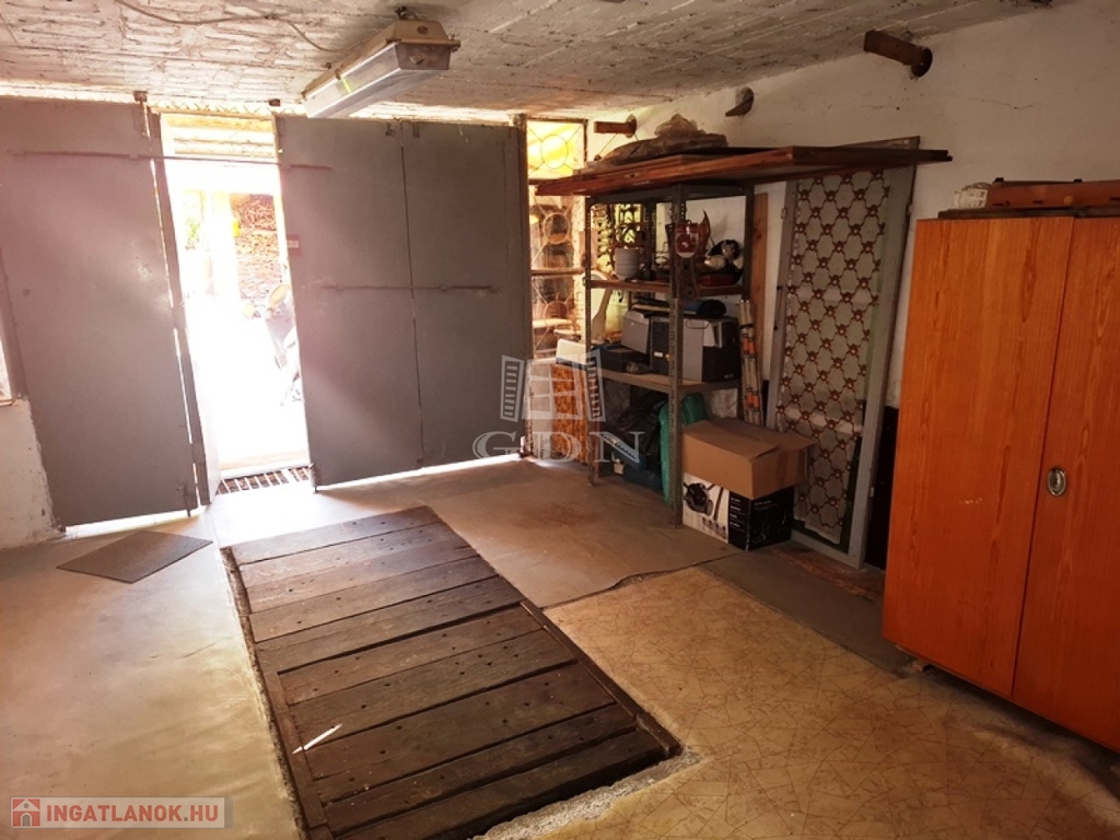 -pince szinten: garázs szerelő aknával, konyha, kamra, szerszám tároló, tároló.