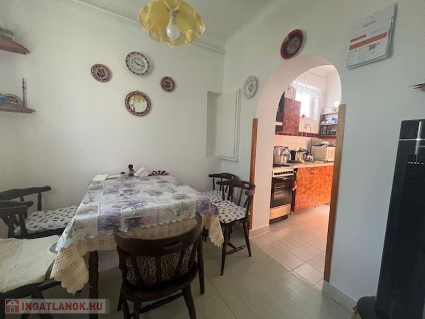 Elosztása:előtér,konyha,kamra,étkező, fürdőszoba, nappali, 2 egymásból nyíló szoba,mely átalakítással külön bejáratú lehet.Burkolatok: járólap,parketta.