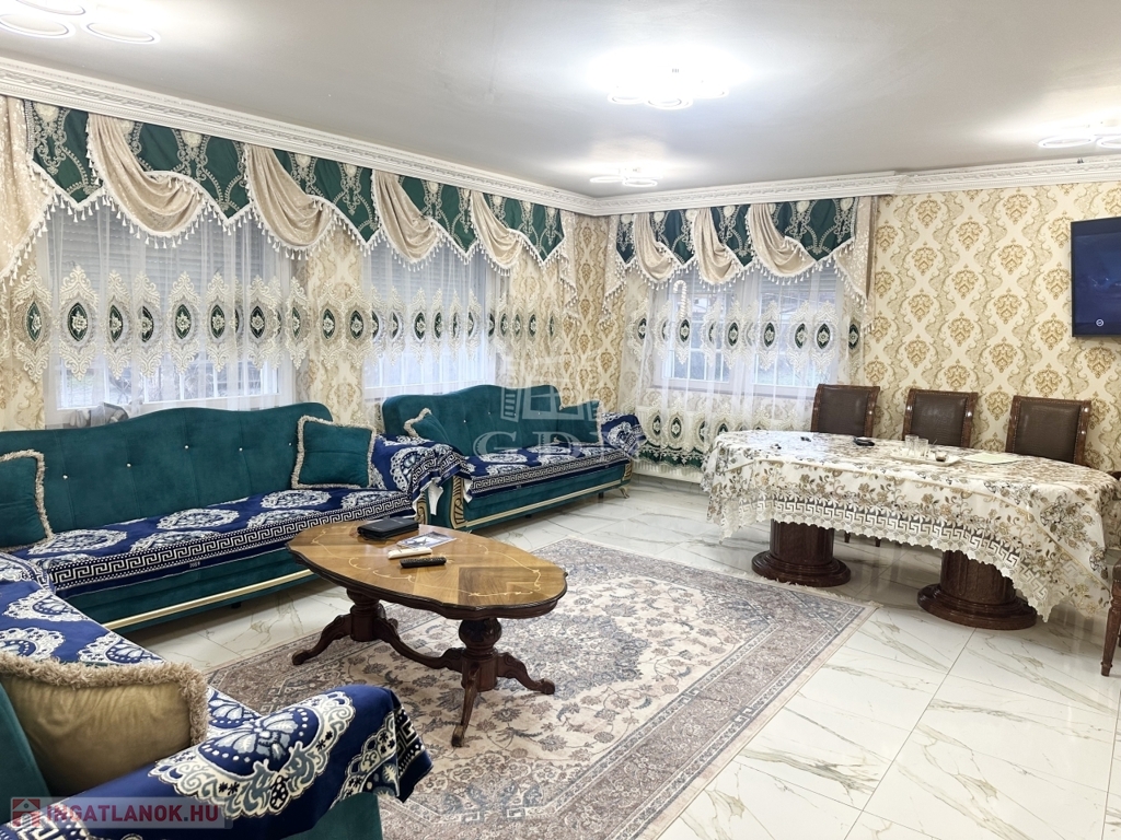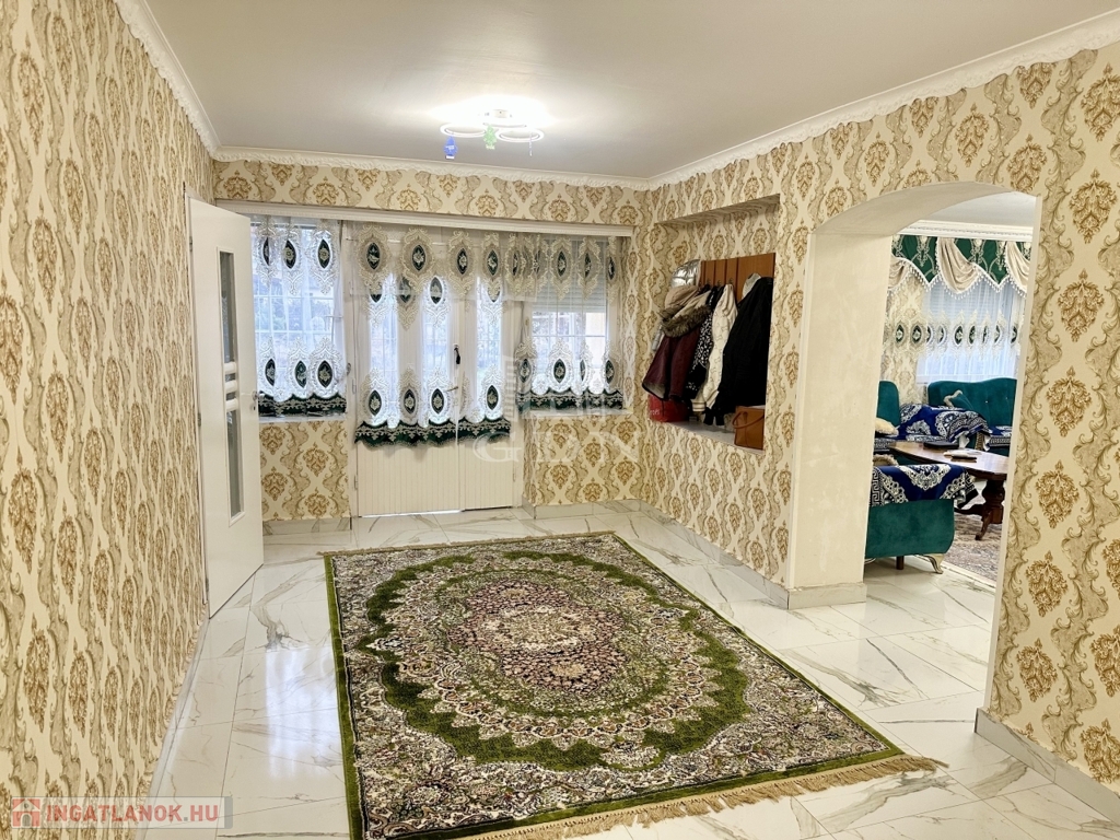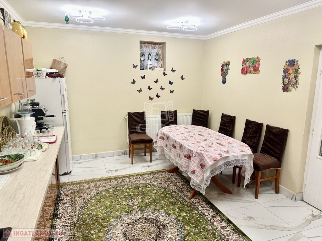 Házhoz közvetlenül kapcsolódik a 35 nm-es garázs.2 generációnak is használható a két bejárat és leválaszthatóság miatt. Az ingatlan első részének fő fala vert fal a többi téglából épült. Beton alapra épült,új zsindely fedéssel. Födém beton perlit szigetelés,OSB lap,gipsz karton. Acél szerkezetű gerendák. Az alapba vasrács lett beépítve. Nyílászárók: 3 légkamrás műanyag+ előkert felől eltolható biztonsági hang és hőszigetelt védő üveg. Burkolatok:járólap,fa parketta. Riasztó rendszer,ipari áram. Nyílászárókon rács,de ez még a múltból maradt,vállalkozás miatt,de ma már nem szükséges,hiszen biztonságos környék. Régen erdő vette körbe. Kertben gyümölcsfák,tuja sor a betonozott autó felhajtón. A telek mérete: 60 méter hosszú illetve 28 méter széles. Az ingatlan falazata miatt télen meleg,nyáron hűvös légkondicionáló nélkül. Locsolás házi vízművel ásott kútról.Duna part 10 perc sétára..1970-ben épült,de 2002-ben bővítés történt porotherm téglából. Fűtés: gázcirkó. Garázsnál 50-es betonfal. Közelben,üzletek,buszmegálló, Duna part.