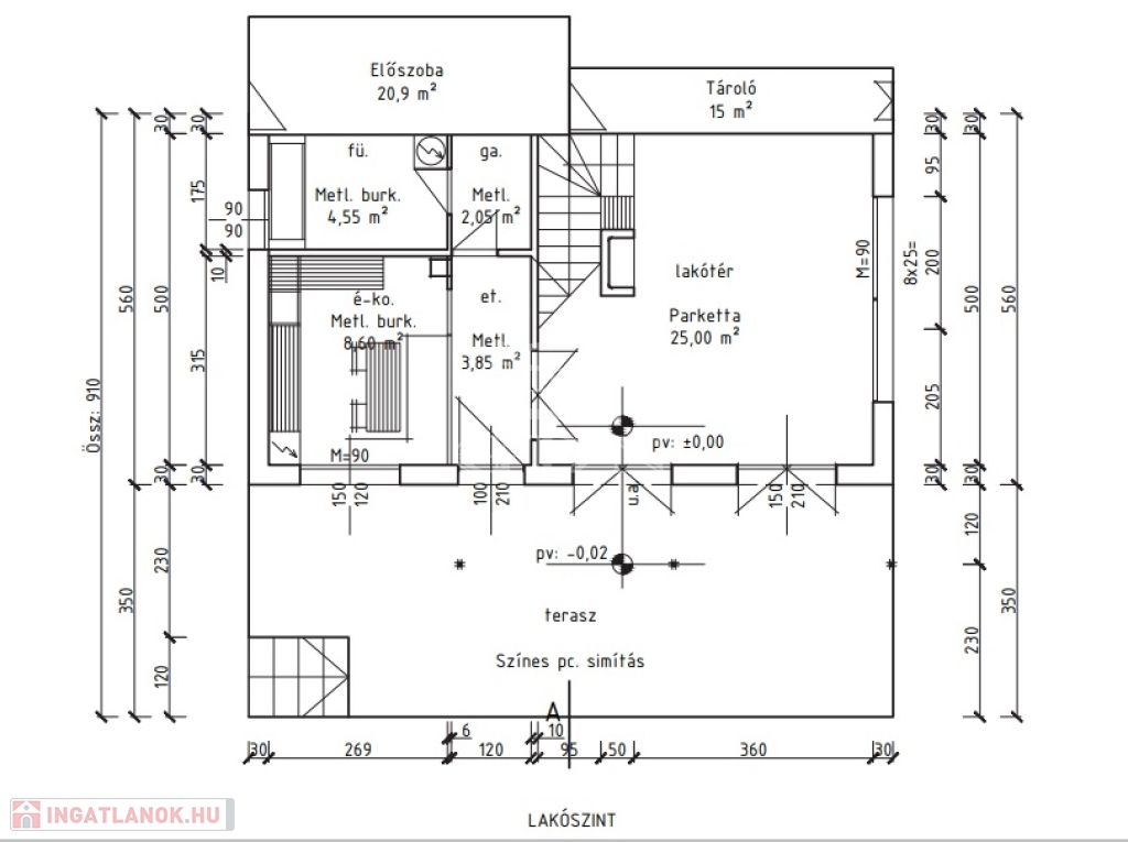 Ingatlan nettó nm tulajdoni lap szerint: 95 nm