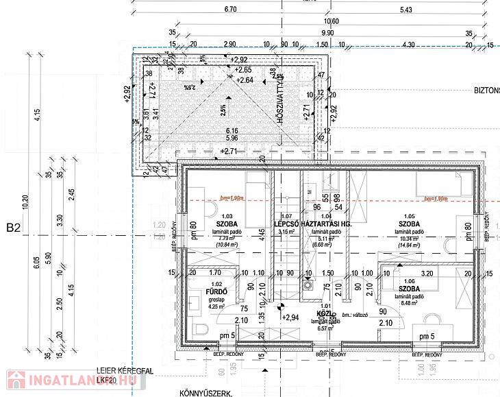 Emelet: 2 db hálószoba, félszoba, fürdőszoba és háztartási helyiség