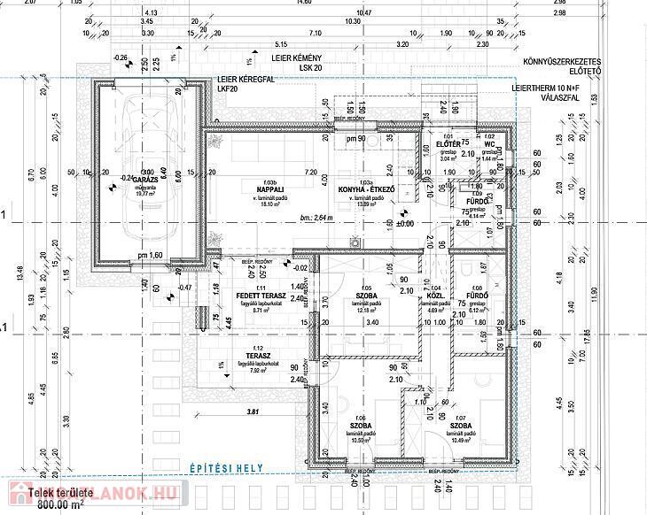 Elosztása: amerikai konyhás nappali, három hálószoba, fürdőszoba, külön WC, tároló és garázs.