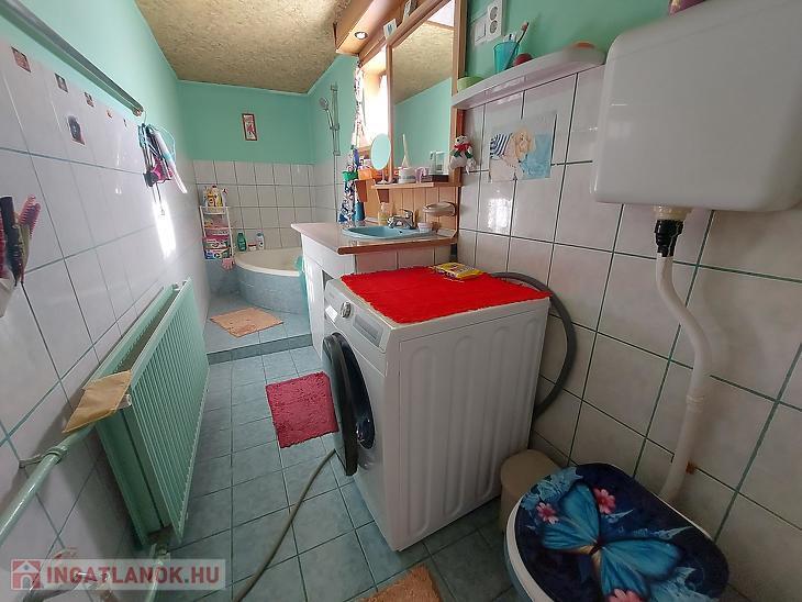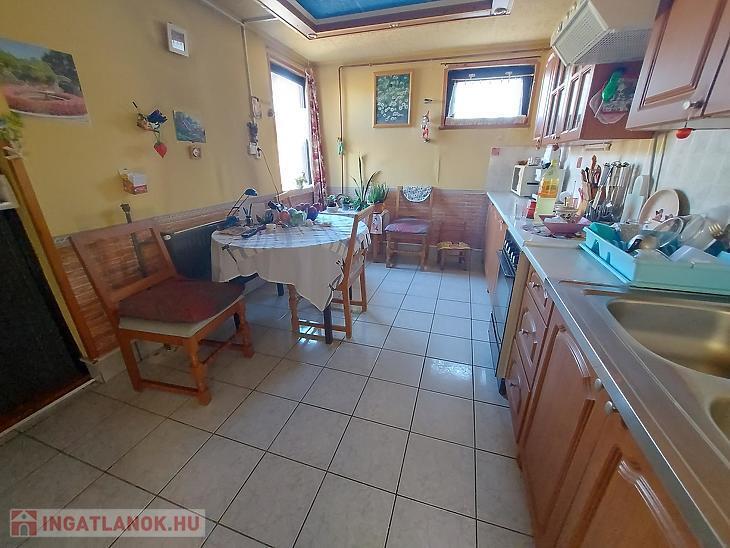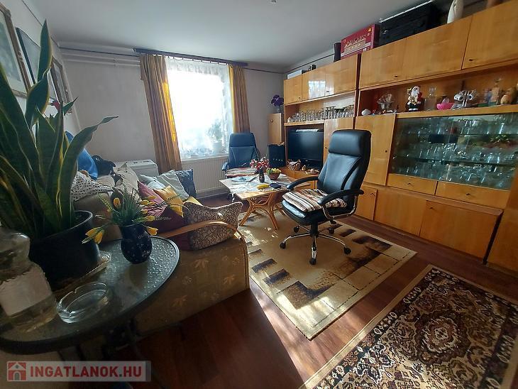 A szobák parkettásak, a többi helyiség járólappal burkolt, a nyílászárók fa típusúak, a fűtést és a melegvizet gázcirkó biztosítja.