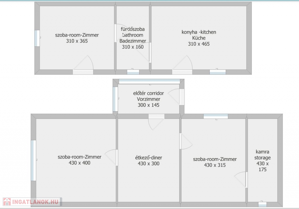 Az ingatlan utcafronthoz közelebbi részén, 2 lakóház helyezkedik el egymással szemben.a fotókon látható állapotban és az alaprajzokon megjelenített pontos felmérés szerint.