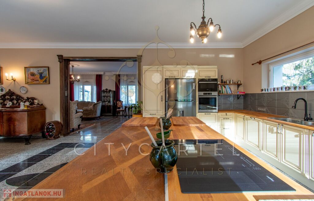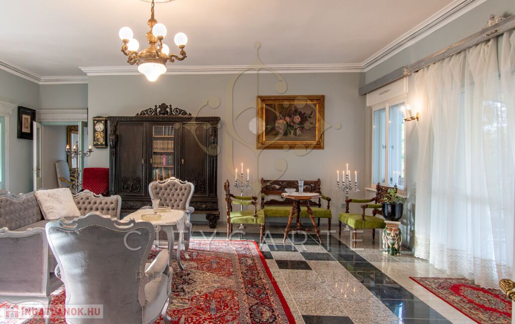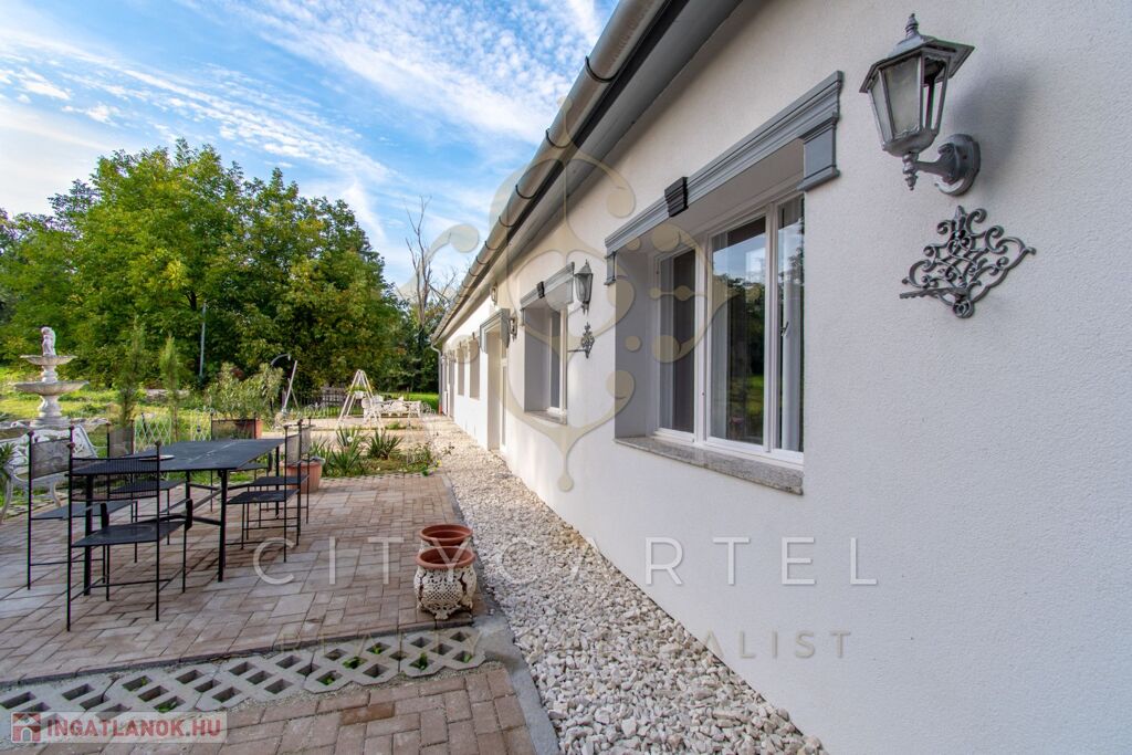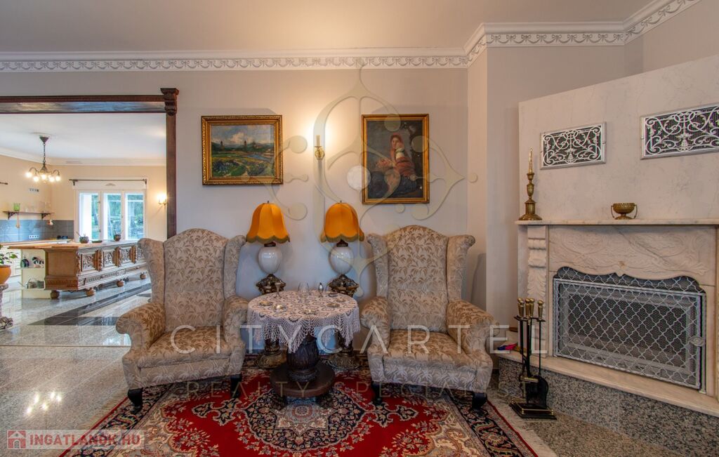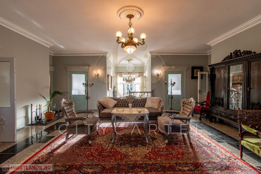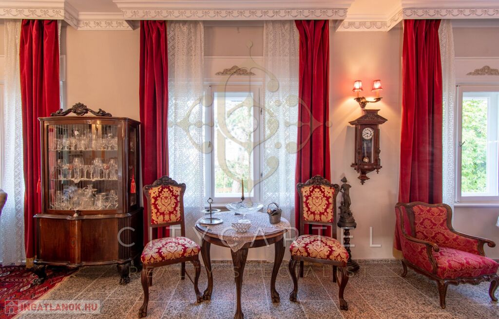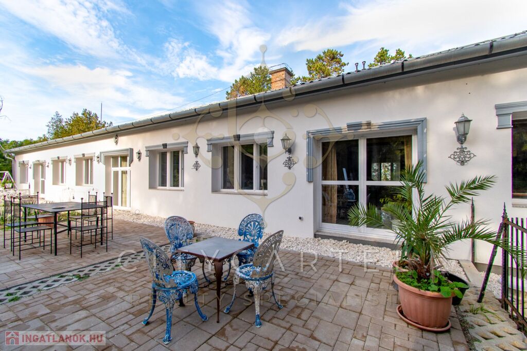 - felújított főépület 500 nm (Lakószint: konyha, ebédlő-társalgó, nappali-hall, kamra, office, lépcsőház, folyosó, powderroom, hálószoba, fürdőszoba káddal és zuhannyal, open concept lakosztály hálóval, fürdővel káddal és zuhannyal valamint bidés WC-vel és garderobe-bal, 2 terasz, Alagsor: garázs, csizmaszoba, folyosó, mosókonyha, mosdó – zuhany – bidés WC, appartament konyhával, hálófülkével, fürdőszoba káddal és WC-vel, amennyiben igény van rá, teljesen bútorozva)