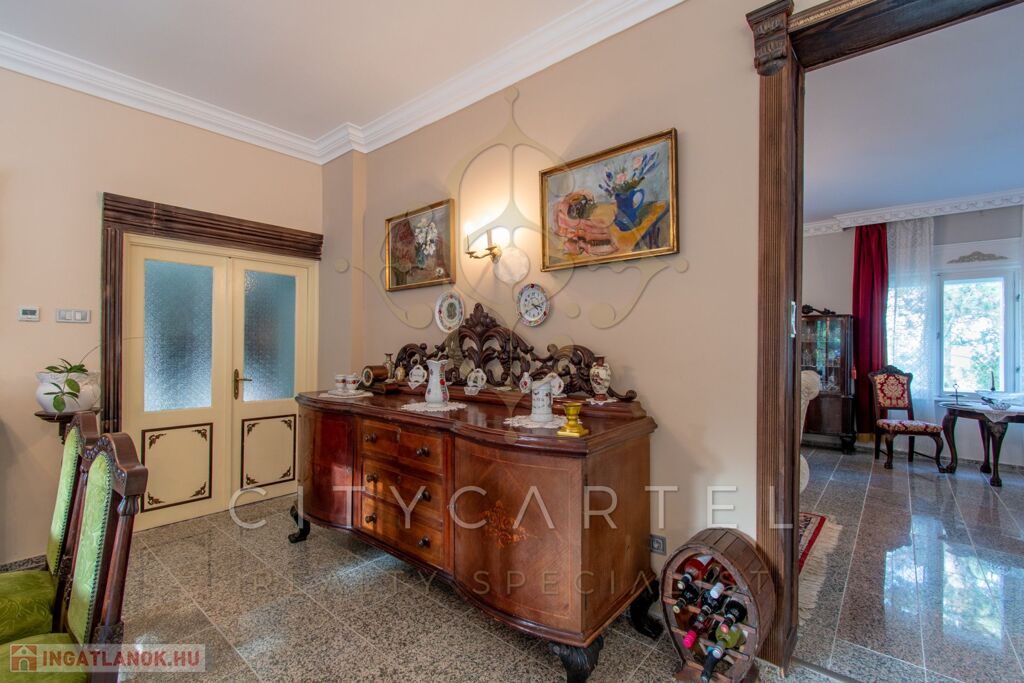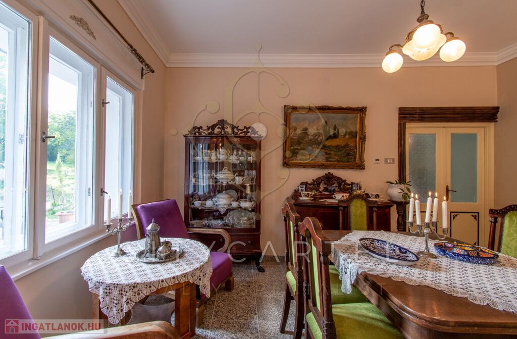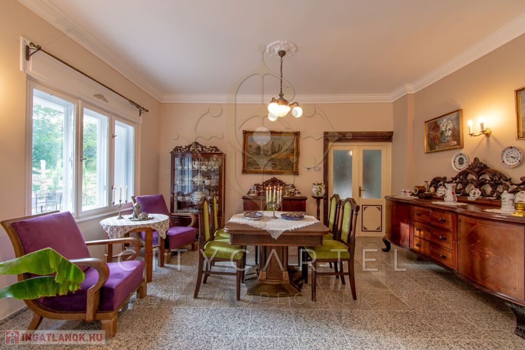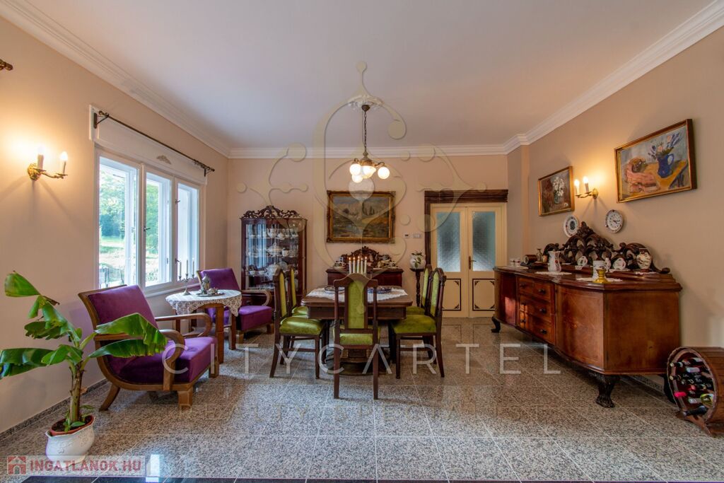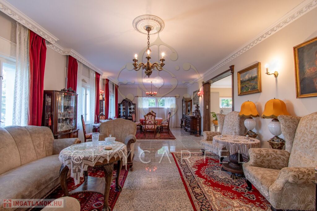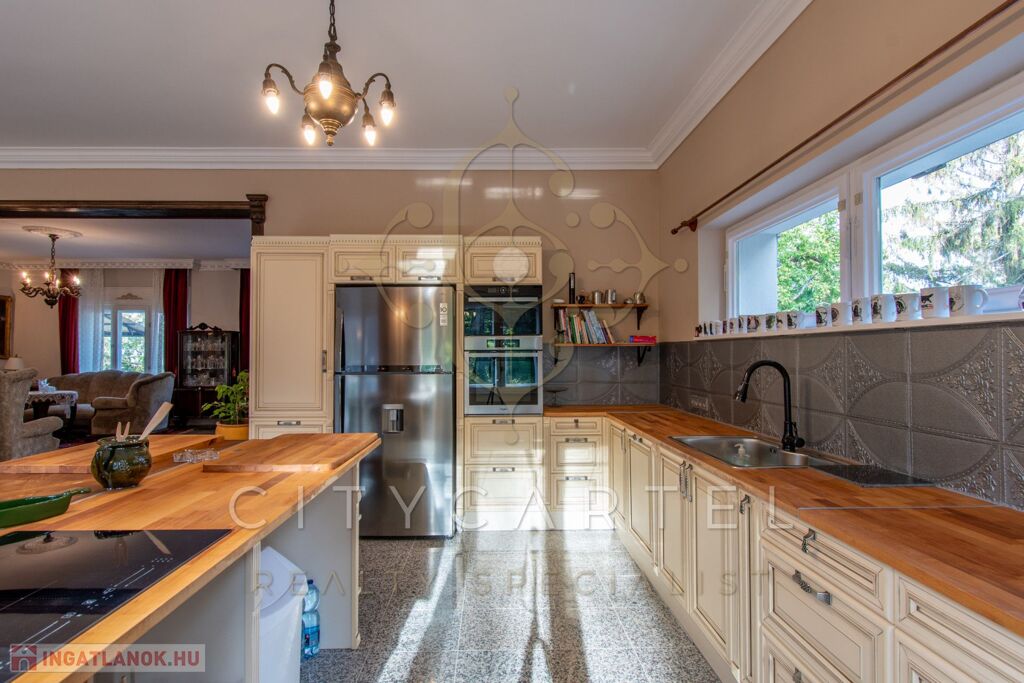 - felújított főépület 500 nm (Lakószint: konyha, ebédlő-társalgó, nappali-hall, kamra, office, lépcsőház, folyosó, powderroom, hálószoba, fürdőszoba káddal és zuhannyal, open concept lakosztály hálóval, fürdővel káddal és zuhannyal valamint bidés WC-vel és garderobe-bal, 2 terasz, Alagsor: garázs, csizmaszoba, folyosó, mosókonyha, mosdó – zuhany – bidés WC, appartament konyhával, hálófülkével, fürdőszoba káddal és WC-vel, amennyiben igény van rá, teljesen bútorozva)