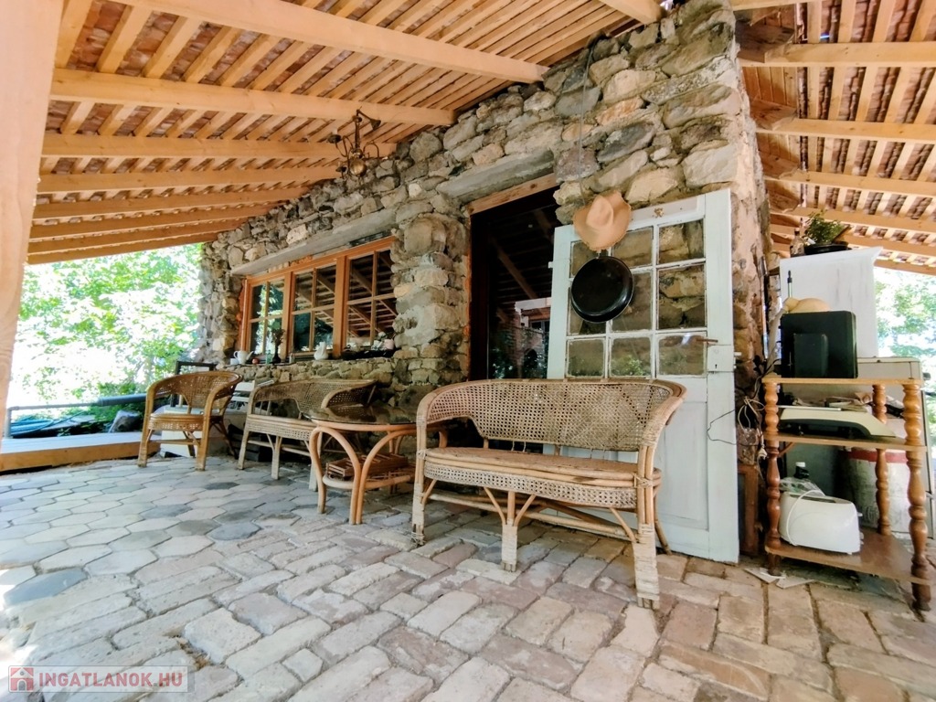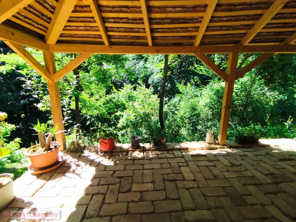 Valamint csatlakozik hozzá még egy 60 m2-es fa terasz a ház és patak közötti szurdok közepén, melyre akár fürdődézsa vagy jurta is tervezhető, vagy egy pergolás terasz.