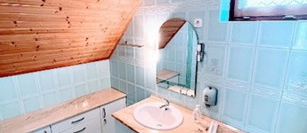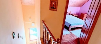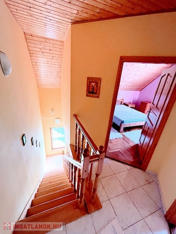Az emeletre egy egyáltalán nem meredek, de rendkívül világos lépcsőn jutunk fel, ahol további 3 hálószoba, fürdő és wc áll rendelkezésre.