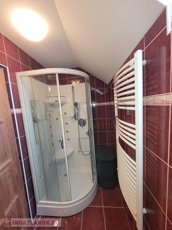 Az emeleti szinten három hálószoba található, zuhanyzós fürdőszoba WC-vel,