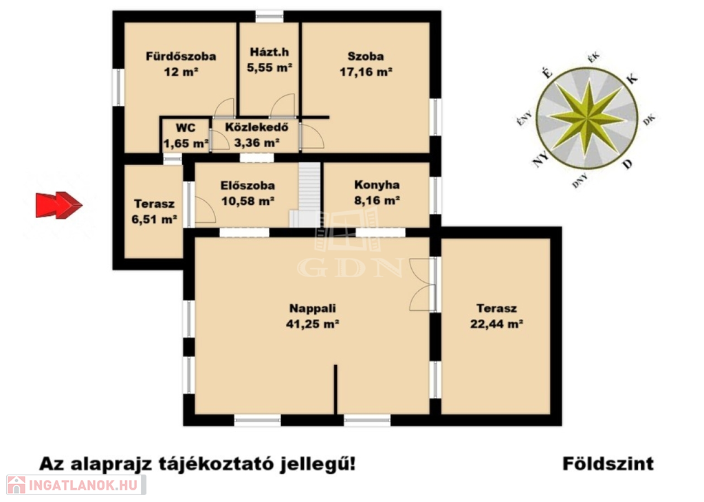 • nappali: 41,25m2