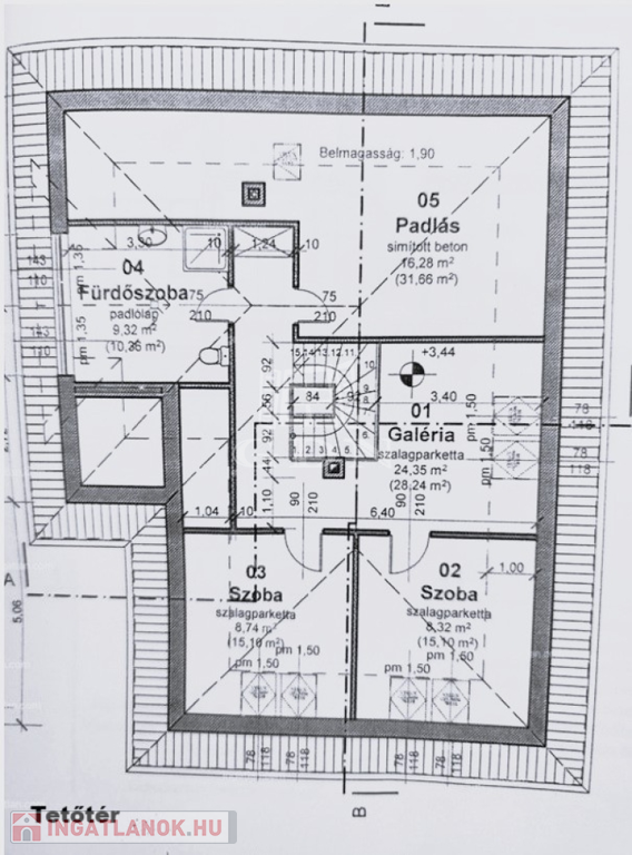 Felső szint: Bruttó 100,46m2