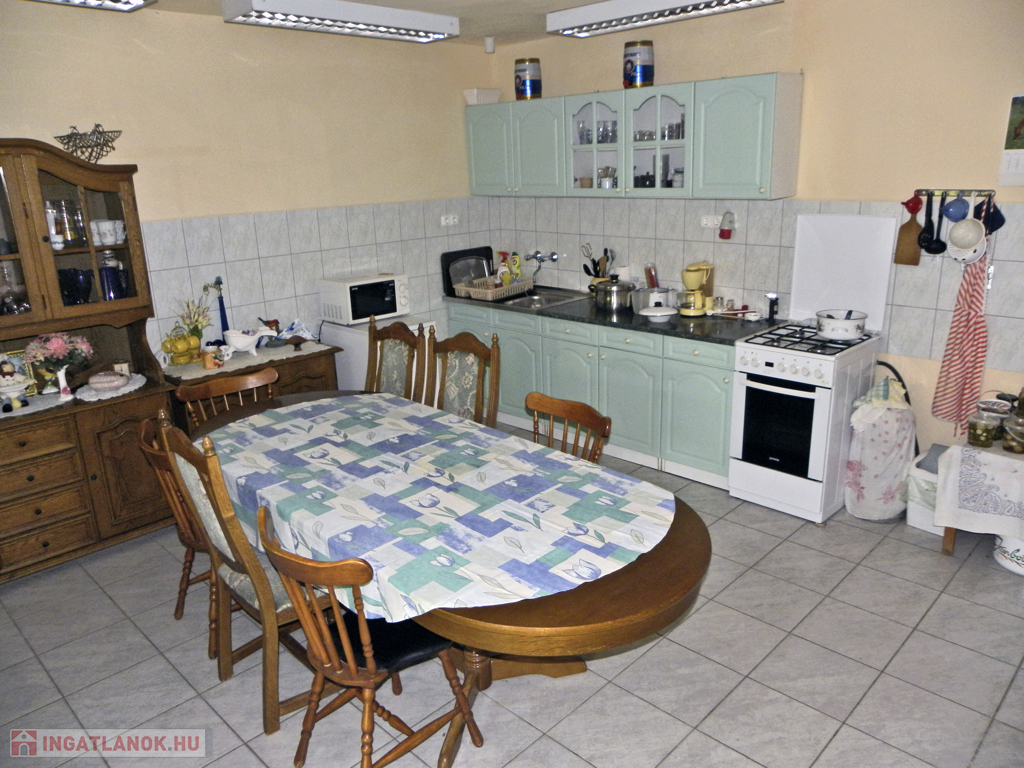 A 2 szintes főépületben (kb.180nm) konyha-étkező-nappali, hálószobák, szintenként fürdő+WC, kamra, tároló.