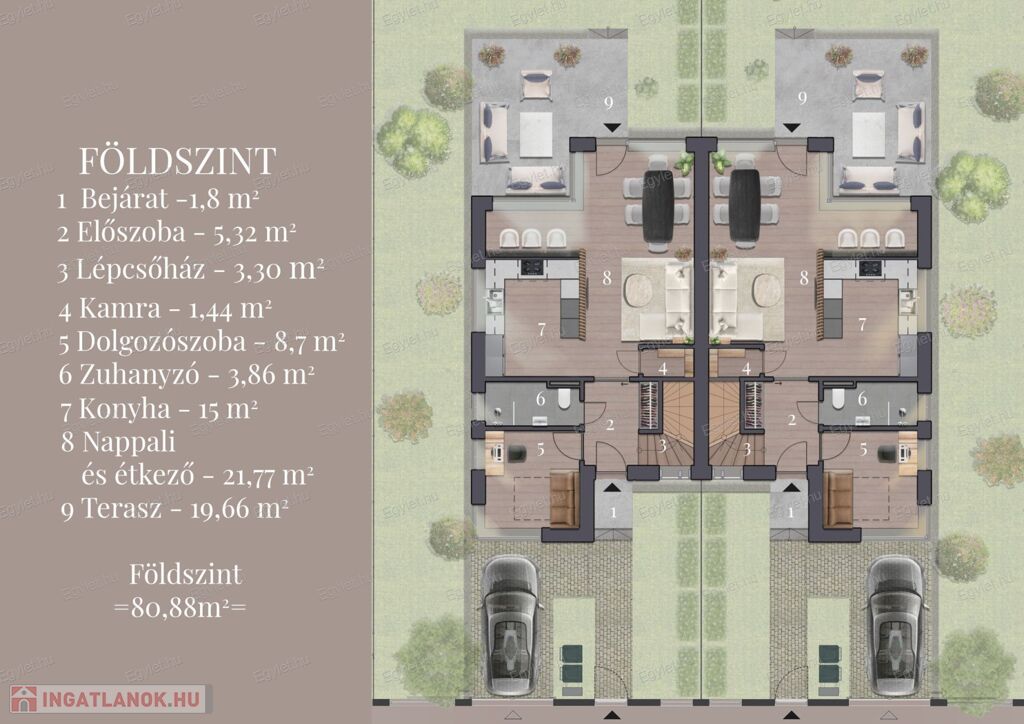 Az ingatlanhoz 400 nm-es privát telek tartozik