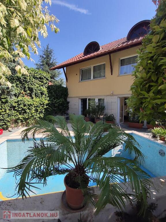 A kertben, melyet az utcáról nem lehet látni, található 25 nm-es fedett és fűthető medence. A lakáshoz a ház előtt 2db autó részére biztosított a parkolási lehetőség.