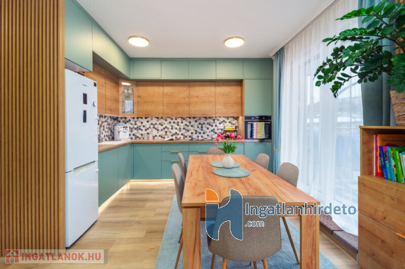 Elhelyezkedése: Társasház Tájolása: Nyugati tájolású Állapota: Újszerű Komfort besorolása: Dupla komfortos Építési éve: 2020 Alapterülete: 100 m2 Telekterülete: 250 m2 Szobák száma: 4szoba Közművek: Víz, Villany, Csatorna Fűtés módja: Egyéb Fűtés típusa: Padlófűtés, Hőszivattyú Építési mód: Tégla Tető formája: Magas Parkolási lehetőség: Garázsban Kilátás: Udvari kilátás Napelem: Van Teljesítmény(kW): 5 Jellemzői: Alacsony rezsi, Csendes környék, Jó közlekedés, Redőny, Légkondicionáló, Étkező, Udvari terasz, Amerikai konyha, Beépített szekrény, Beépített konyhabútor, Kaputelefon, Kert, Kerítés, Egyedi vízóra , Kapunyitó automatika, Jó közbiztonság Energetikai besorolás: A+ Egyéb jellemzők: Erkély, Terasz, Tetőtér Tv, Internet: Kábeltévé, Internet Közelben: Iskola, Óvoda, Helyi autóbuszállomás, Orvosi rendelő, Bolt, Gyógyszertár, Postahivatal, Vendéglátó egység Rezsi költség(Ft): 1000 Terhelések: Tehermentes ingatlan