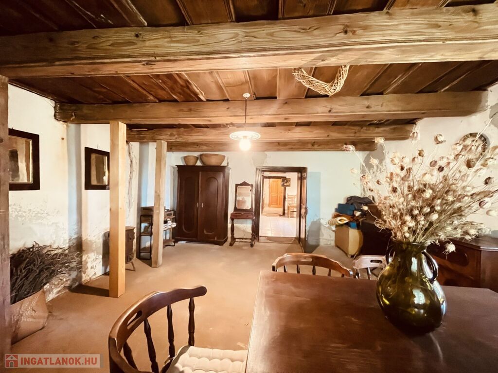 Minden helyiségben látható gerendázat erősíti az autentikus hangulatot.