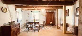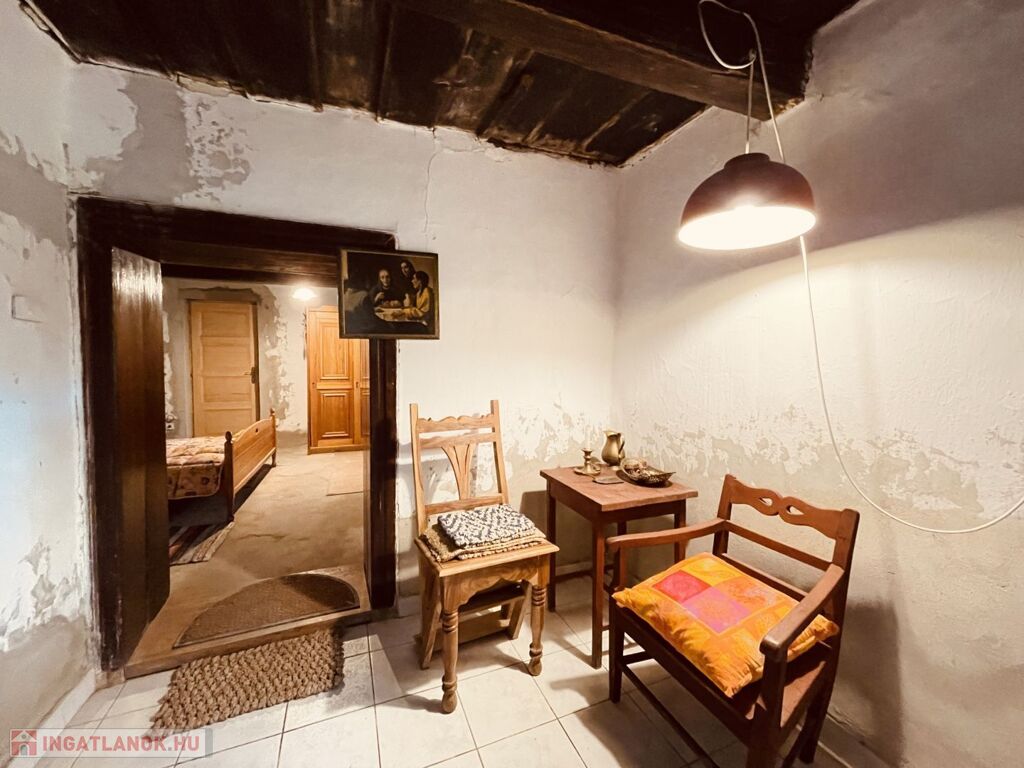 A hátsó rész: egy autentikus 36 m 2-es rész, régies bútorokkal berendezve, konyha- étkező-nappalinak használható.
