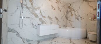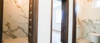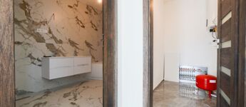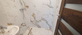 Nívós fal és padlóburkolatokat helyeztek el a fürdőszobáktól kezdve(2 darab is található a lakásban így duplakomfortos) a napaliig.