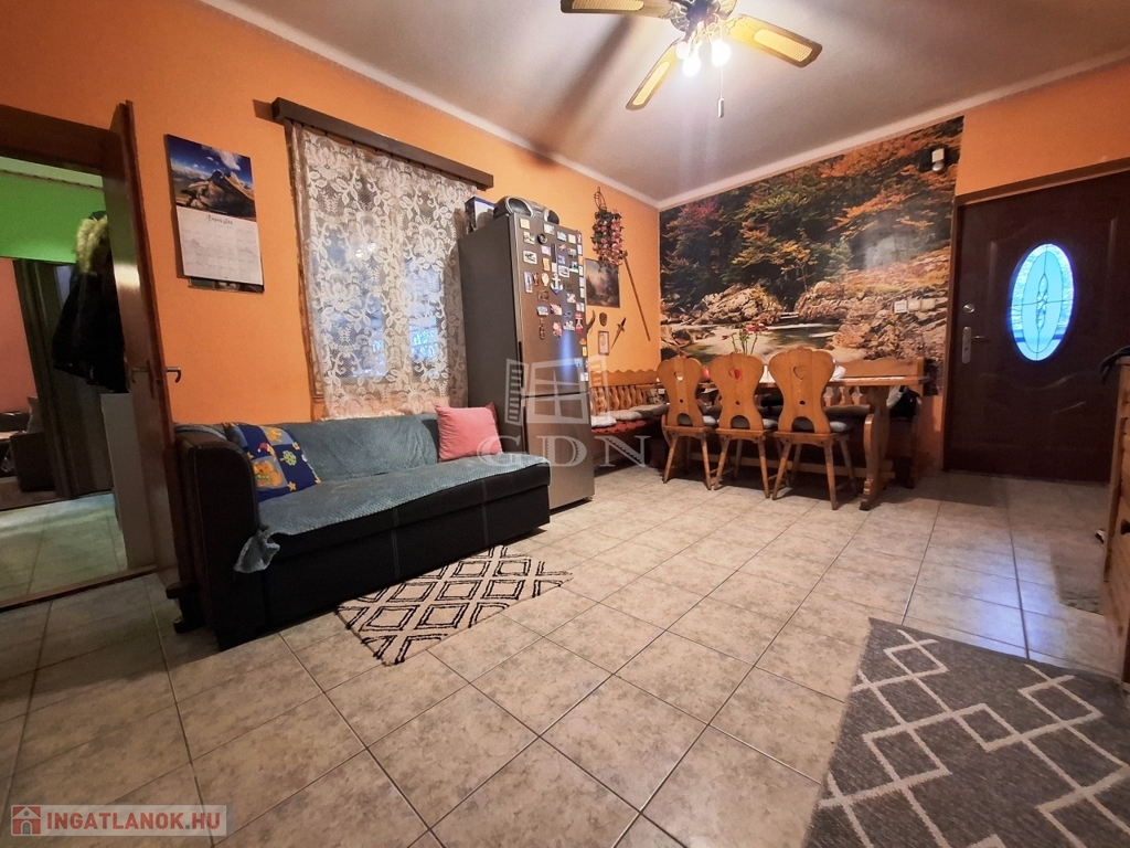 A 70 nm alapterületű ház beton alapra, vegyes falazattal beton födémmel, cserép fedésű tetővel 1972-ben épült, 709 m²-es összközműves telken helyezkedik el, ahol minden adott a kényelmes vidéki élethez.