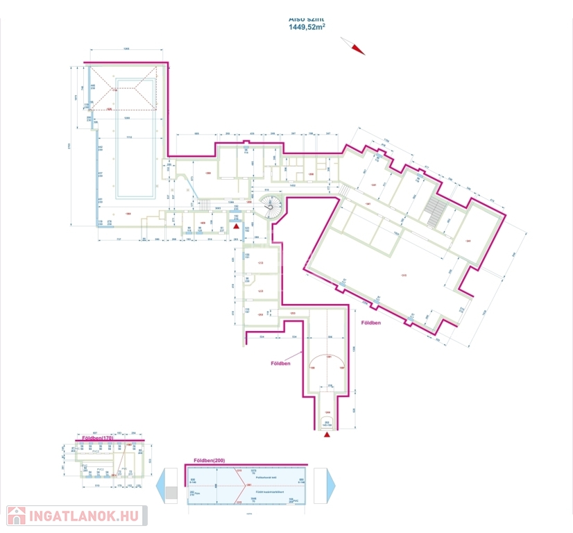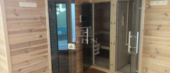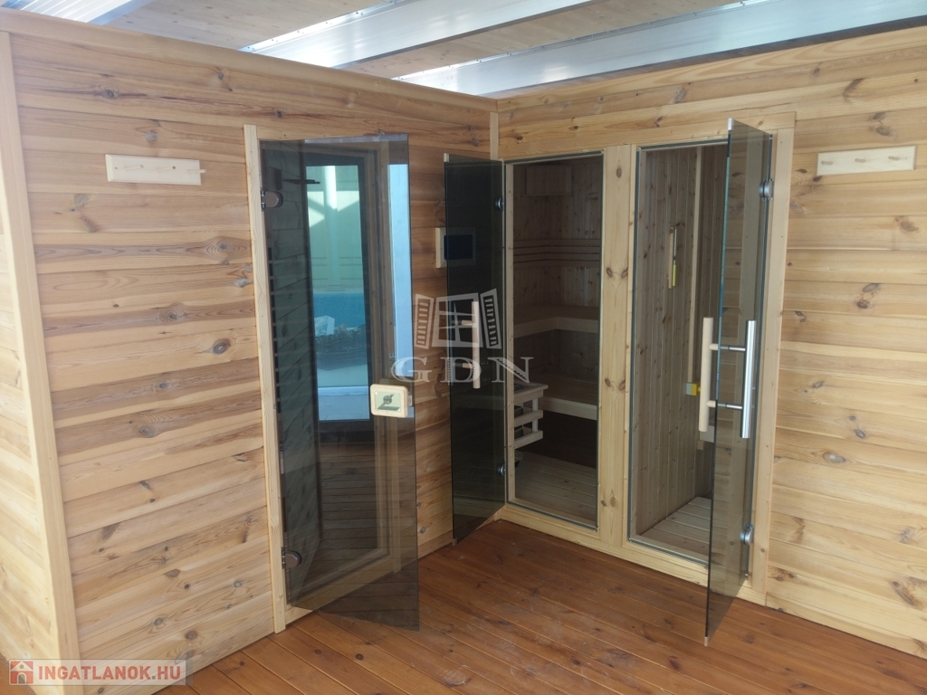 Az alsó szinten garázs, tárgyalók, konyha, borospince, gondnoki lakás és egy impozáns wellnessrészleg található beltéri medencével, gőzkabinnal és kültéri szaunaházzal.