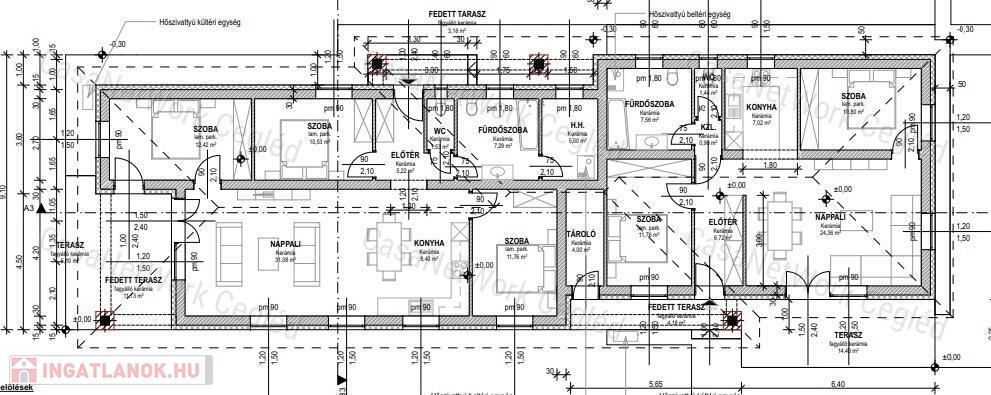 A hirdetett lakás: A. lakás: fűtött lakótér: 80 nm + 18,58 nm terasz