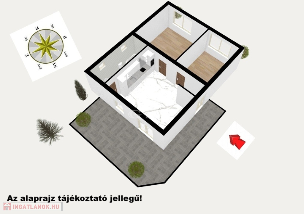 - AMERIKAI KONYHÁS NAPPALI + 2 szoba