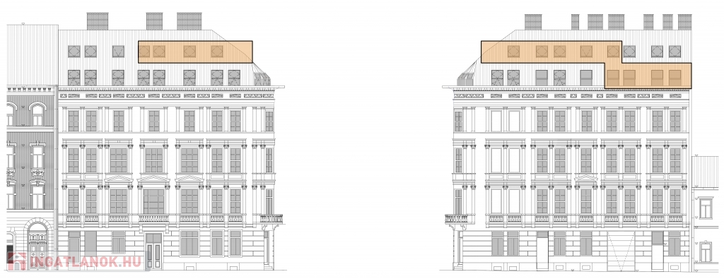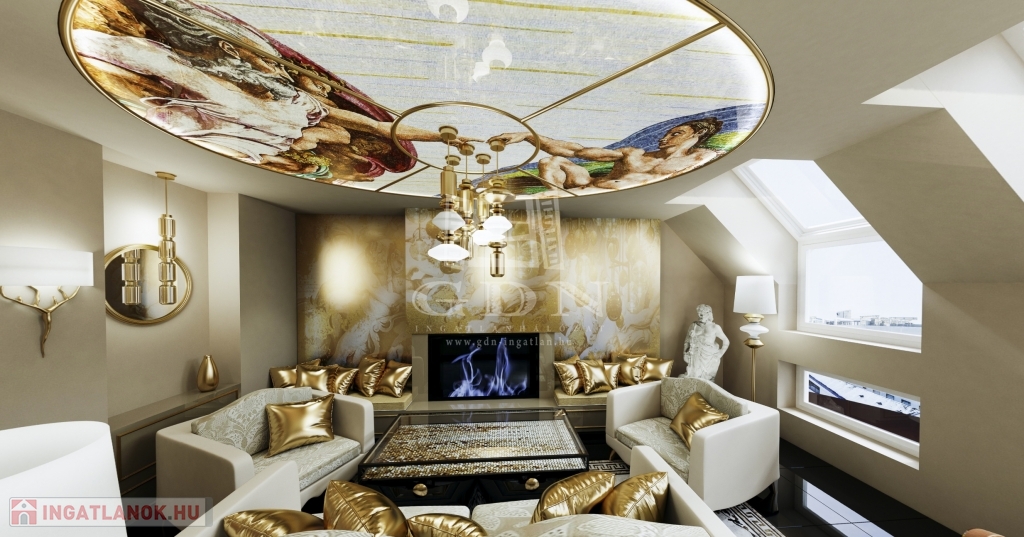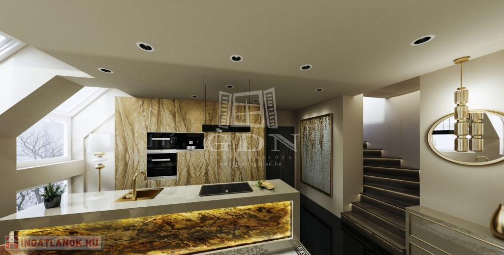 V. kerület Belvárosi részén, napfényes, magasemeleti luxus lakások kerülnek kialakításra a kivitelezéssel párhuzamosan pedig az épület korhűen megújul és egyidejűleg modern felvonó kerül beépítésre. Összesen 174m2 lakóterülettel rendelkezik ez a remek három hálószobás, tetőteraszos ingatlan. A bejárati szinten a konyha nappali mellett egy vizes helyiség kerül kialkaításra, a hálószobák az élettértől jól elszeparálva az emeleten kapnak helyet a mellékhelyiségekkel, innen jutunk fel a privát 28m2-es tetőteraszra mely kizárólag ennek a lakásnak a kényemét biztosítja. Az előrelátó tervezésnek köszönhetően nem lakószobából megközelíthető a tetőterasz így valóban szerves része lehet a lakásnak. Méretéből adódoan akár egy családnak megfelelő lakóhelyet biztosíthat. A mellékelt látványtervek csupán egy, a számtalan megvalósítható lehetőség közül, jelen stádiumban még 100%-ban lehetséges a leendő tulajdonosok elképzeléseinek megvalósítása.