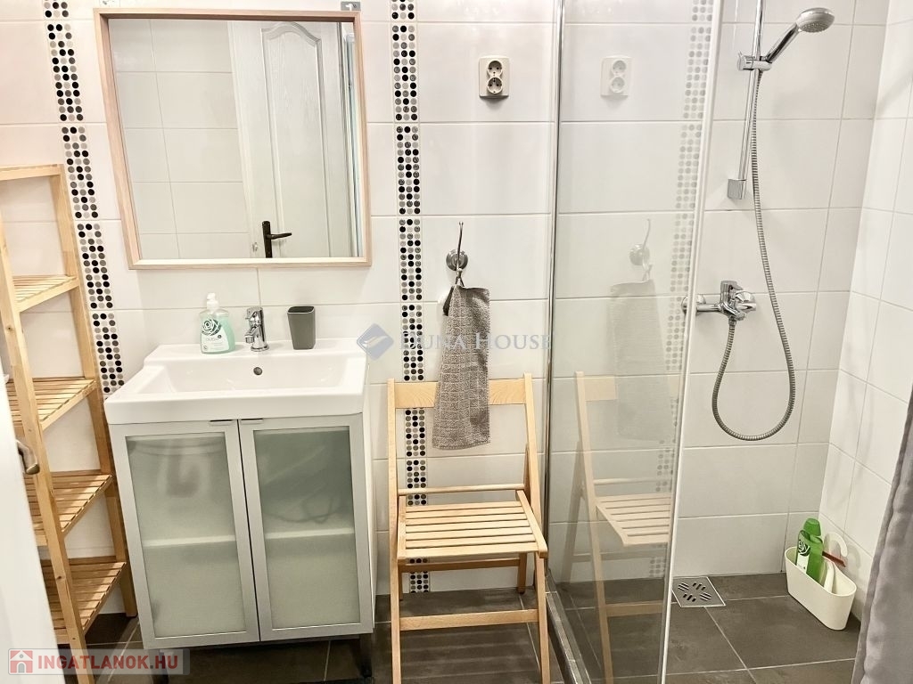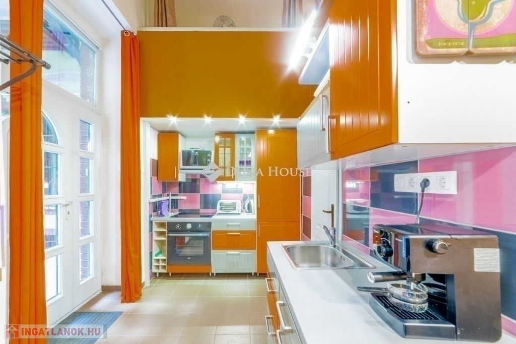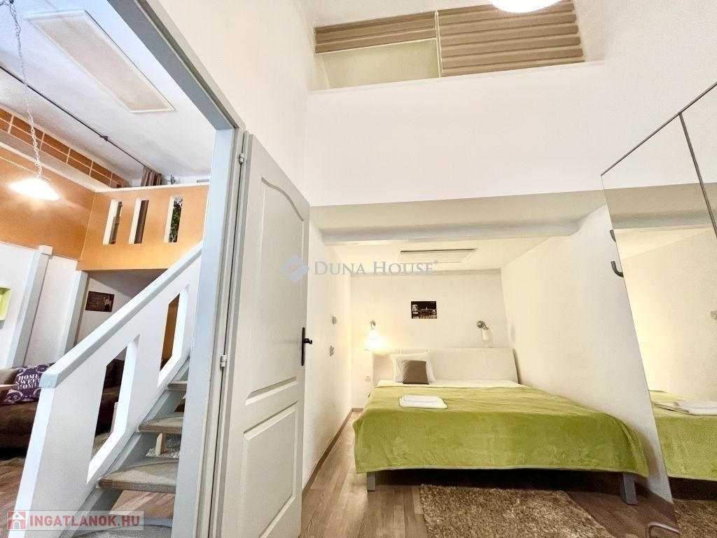 Az V. kerület egyik legkedveltebb részén, közvetlenül a Károlyi Kert közelében kínálunk eladásra egy felújított, modern kialakítású, 44 m²-es lakást, amelyet egy álló magasságú, 20 m²-es galéria két további helyisége tesz igazán egyedivé.A tágas, amerikai konyhás nappali, a dupla komfort (zuhanyzós fürdőszoba és WC + külön WC + előmosdó), valamint a csendes, belső udvarra néző fekvés mind a kényelmet és a nyugalmat szolgálják.A galéria úgy lett kialakítva, hogy a nagy belmagasságot kihasználva bővítse és ne összenyomja a teret, ami így könnyed és hangulatos.Az épület kívül-belül rendezett, a környék pedig Budapest egyik legszebb zöldövezeti belvárosi része, pár perc sétára a Duna-parttól és a Váci utcától.Fő előnyök:44 m² lakótér + 20 m² állógaléria2+2 szoba, átgondolt térkihasználásElektromos mennyezeti infrapanel fűtésPrémium lokáció az 5. kerület szívében biztonságos, belvárosi, mégis nyugodt zöld környezetMagánszálláshely-engedély