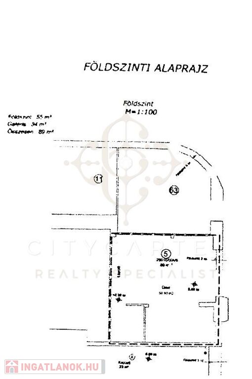 A földszinti rész 55 nm, amelyben ki lett alakítva egy kis mosdó és raktár is.