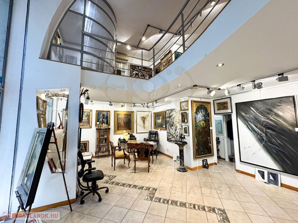 Az üzlet teljes belmagassága 630 cm, ami óriásivá varázsolja a teret. A galériázott rész alatt 263 a fenti üzletrész pedig 232 cm magas, ahol található egy külön leválasztott irodahelyiség. A belső berendezés nem tartozéka az üzlethelyiségnek, azok akár vétel esetén 24 óra alatt elszállításra kerülnek.