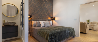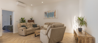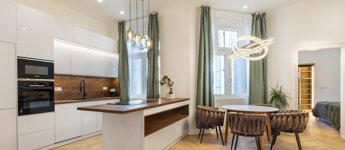The apartment has been renovated with top-quality materials, craftsmanship, and interior design, creating a modern yet timeless atmosphere.
