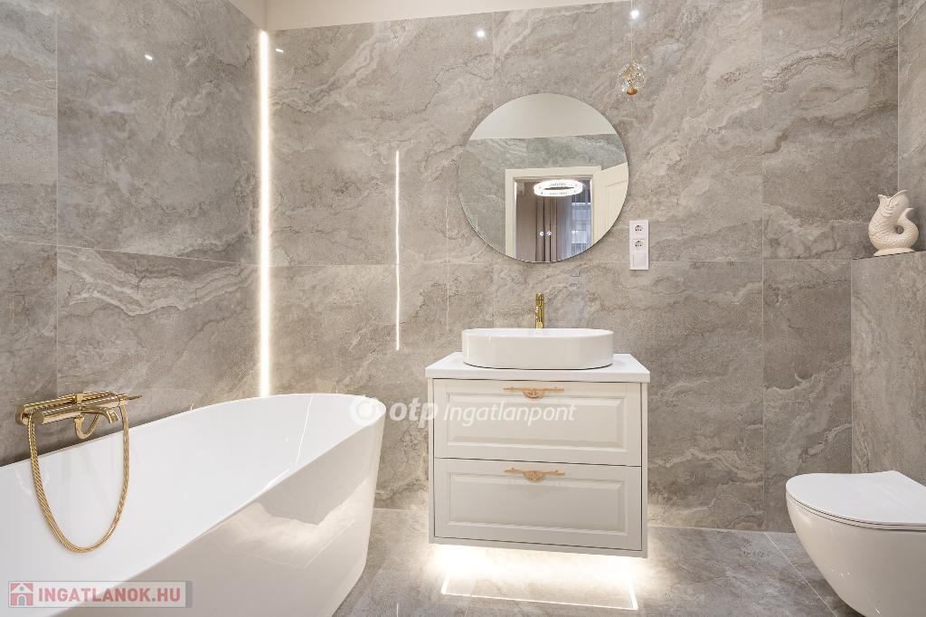 Az új minőségi beltéri ajtók és a márványos padló elegáns összhatást kölcsönöz. A teljes víz-, és villanyvezeték hálózat megújult.