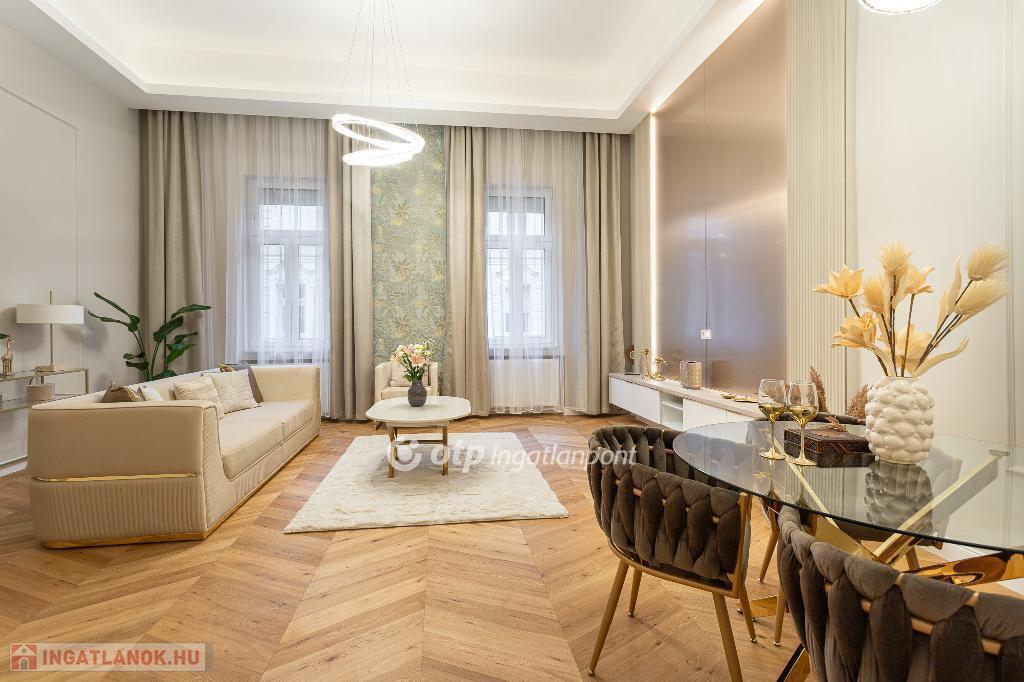 Az V. kerületben a Szemere utcában a Parlament közelségében, nagypolgári társasházban, rendezett, dupla LIFTES, 3. emeleti, 4 szobás, teljeskörűen és prémium minőségben újjáépített, CSENDES, NAPFÉNYES, tágas terekkel rendelkező 86 nm-es, amerikai konyhás nappalival + 2 külön nyíló hálószobával, amelyekhez 2 külön fürdőszoba tartozik, valamint 1 gardróbszobával rendelkező LUXUS lakás eladó.