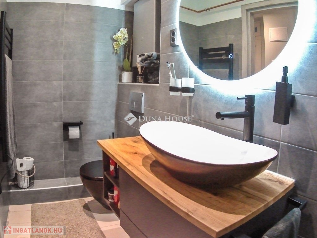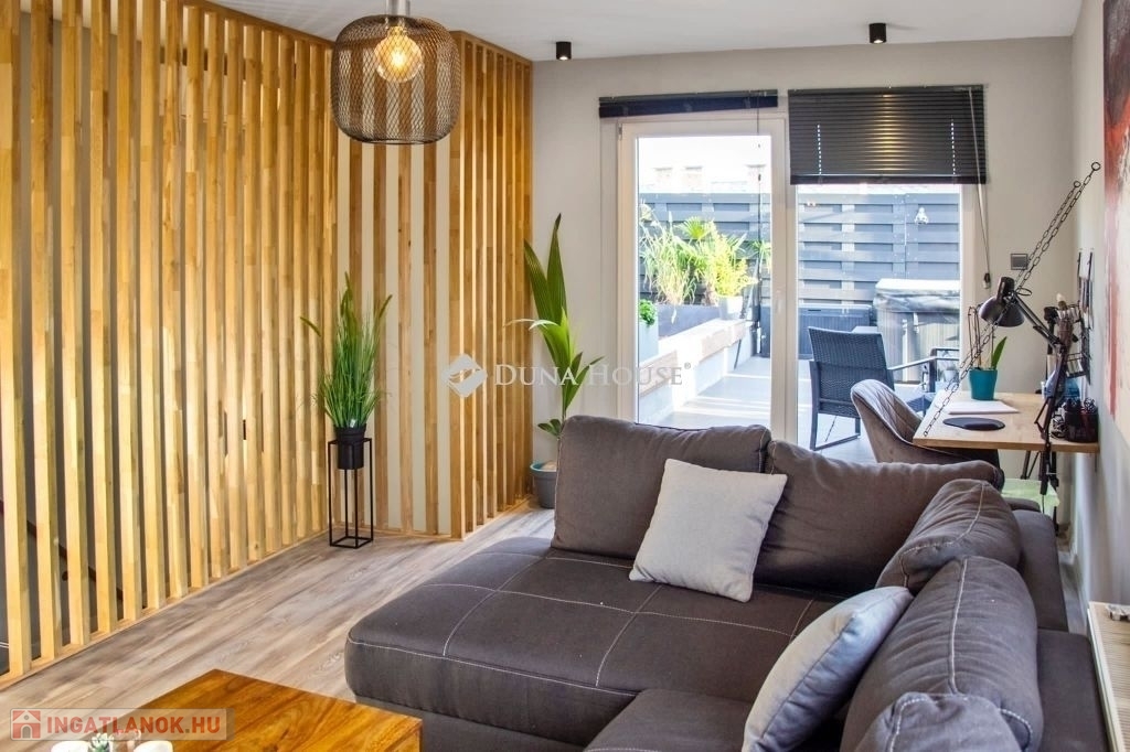 A hivatalosan 57 m²-es, napfényes otthon igényesen kialakított terekből áll, modern gázcirkós fűtéssel és klímával. Legnagyobb értéke a saját, panorámás tetőterasz, ahol a jacuzzi külön privát életteret teremt.