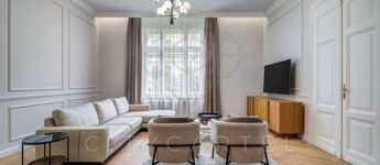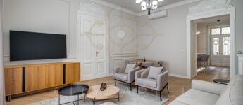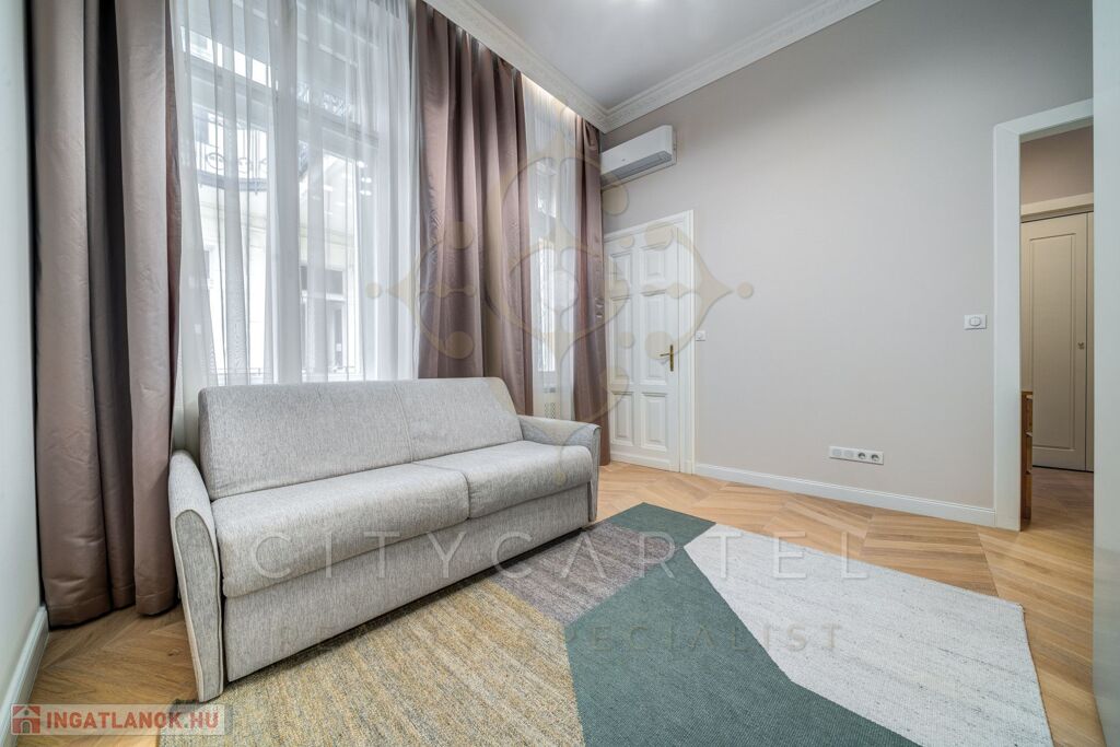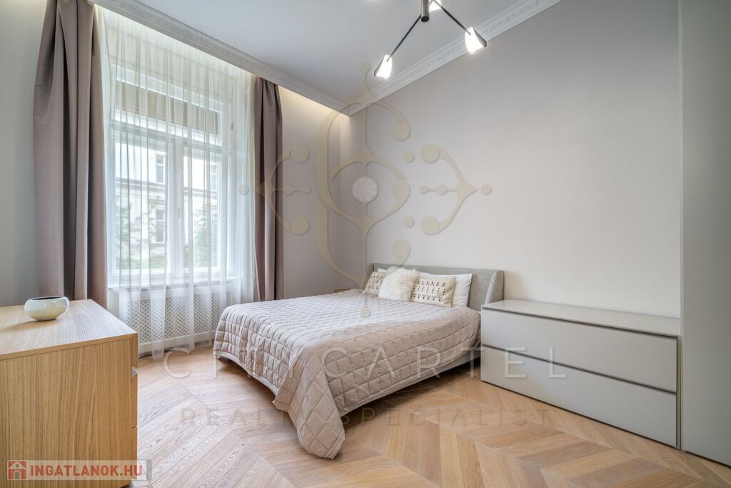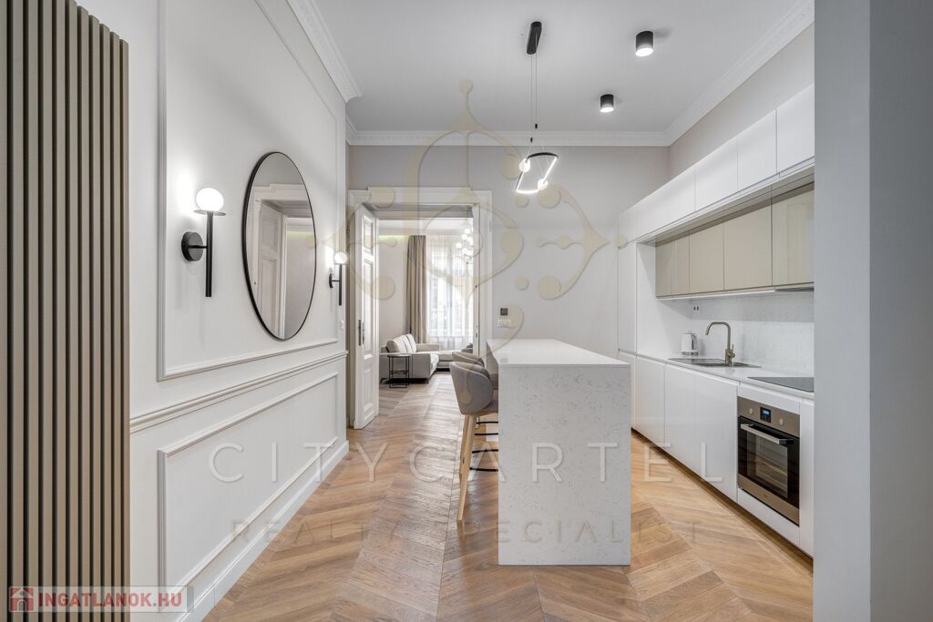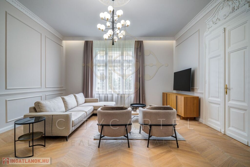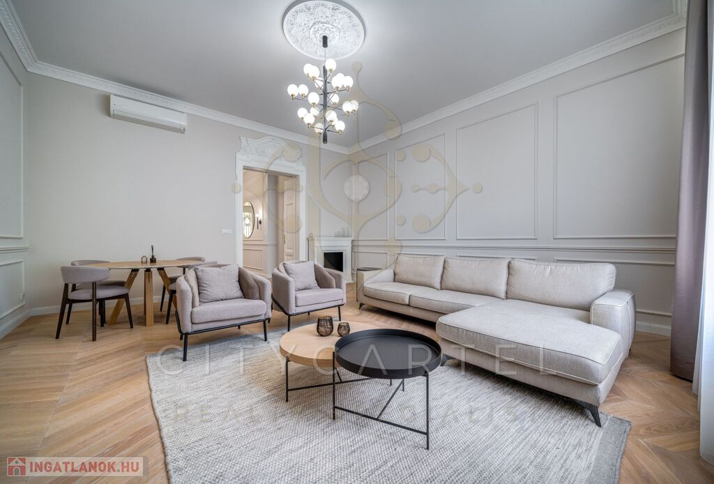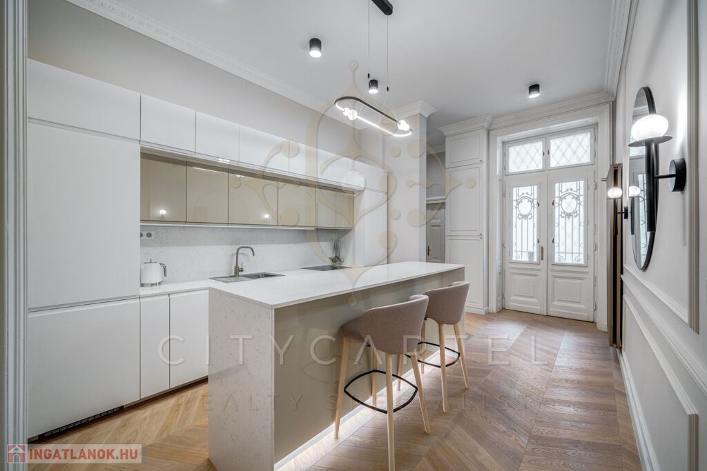 Budapest egyik legkeresettebb, történelmi belvárosi utcájában kínáljuk bérbeadásra ezt a 105 nm-es, teljes körűen felújított, luxus kivitelű lakást, amely minden részletében az igényességet és az időtálló eleganciát képviseli.