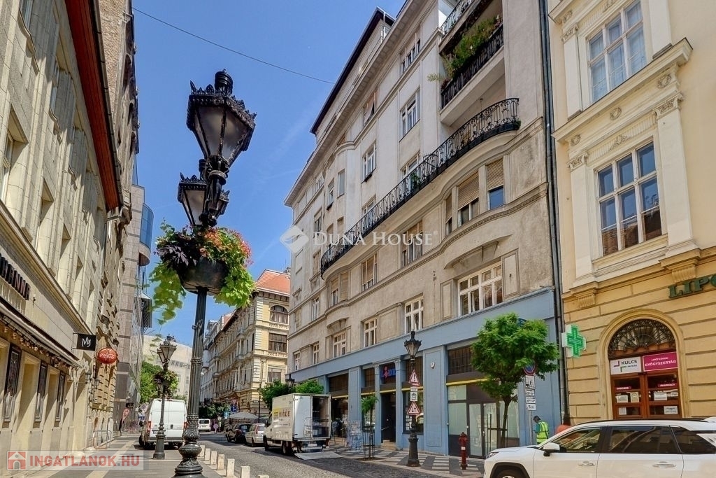 Kiváló, hosszú távon stabil befektetési lehetőség Budapest belvárosában.Eladó egy világos, 2 szobás, kivételes adottságú lakás az V. kerület szívében, a Bank Center és a Szent István Bazilika közötti szakaszon, az Arany János utcában. Az ingatlan egy gondozott, klasszikus épület 3. szintjén található (liftes ház), amely több mint száz éves építészeti karaktert őriz.A kb. 74 m²-es lakás két tágas, nyugati tájolású szobával rendelkezik, mindkettő erkélykapcsolattal. Az előtér étkezős kialakítású, konyhasarokkal, külön fürdőszobával és külön WC-vel. A lakást néhány éve felújították, kiváló műszaki állapotú, légkondicionálóval felszerelve.Az ingatlan jelenleg hosszú távú bérleti szerződés alatt áll, professzionális üzemeltető céggel, a bérleti díj mértéke pedig szerződés szerint évről évre emelkedik. A rezsi és közös költségek a bérlőt terhelik, így a hozam tervezhető és fixált.Az ingatlan kizárólag bérlővel együtt eladó.Megtekintés előzetes egyeztetéssel, jellemzően egyhetes szervezési idővel lehetséges.Kimagasló befektetés stabil hozammal Budapest egyik legértékállóbb lokációjában.